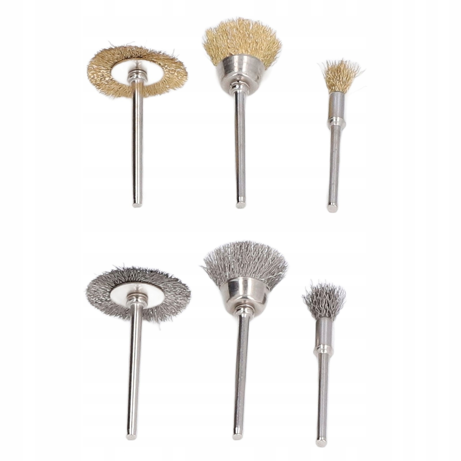 Диаметр проволочной щетки: щетка для колес. 25 мм / 1,00 дюйма, горшка щетка ок. 15 мм / 0,60 дюйма, перья щетка ок. 5 мм/0,20 дюйма
