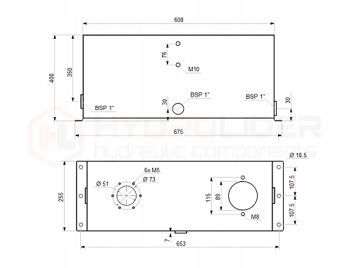 - Размеры бака: длина 600 мм; высота 450 мм; ширина 255 мм