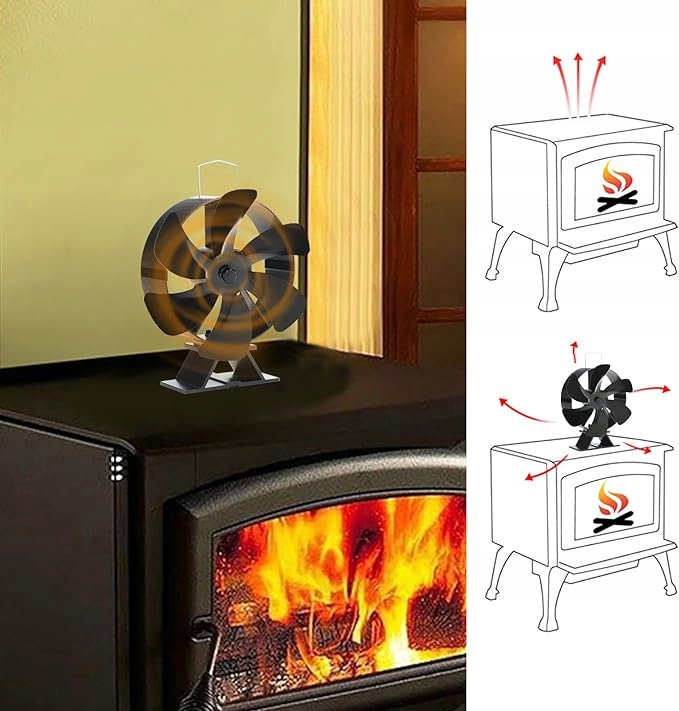 🌞Вентилятор для дровяной печи Вентилятор для камина с вращением вверх и вниз на 180° Вентилятор с тепловым приводом 6-лопастной термоэлектрический вентилятор