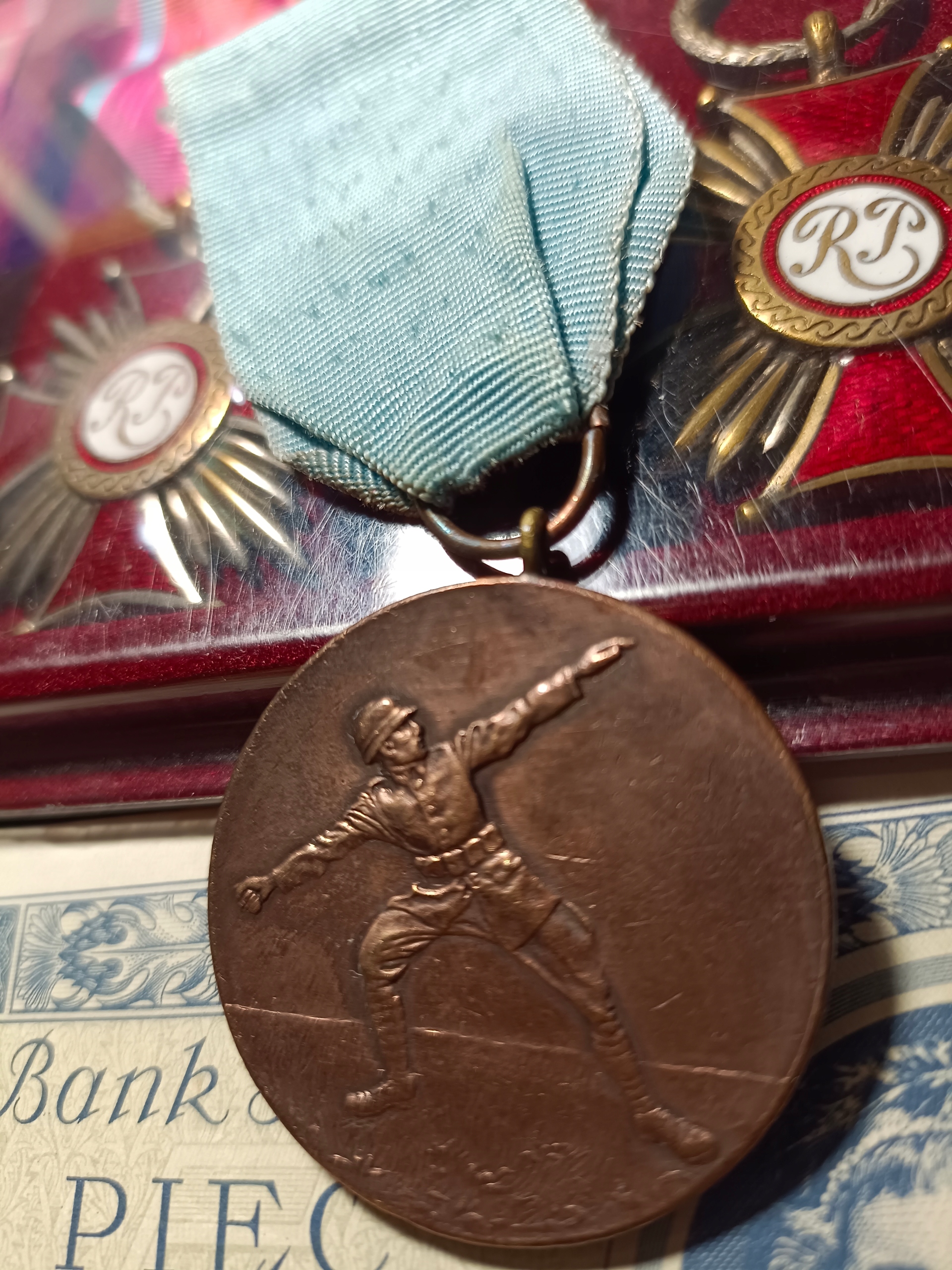 Предварительная медаль польской армии. Гранатная проекция, Galmet [Sosnowiec] лента также из эпохи. Коллекция оригинальности коллекции гарантирована.