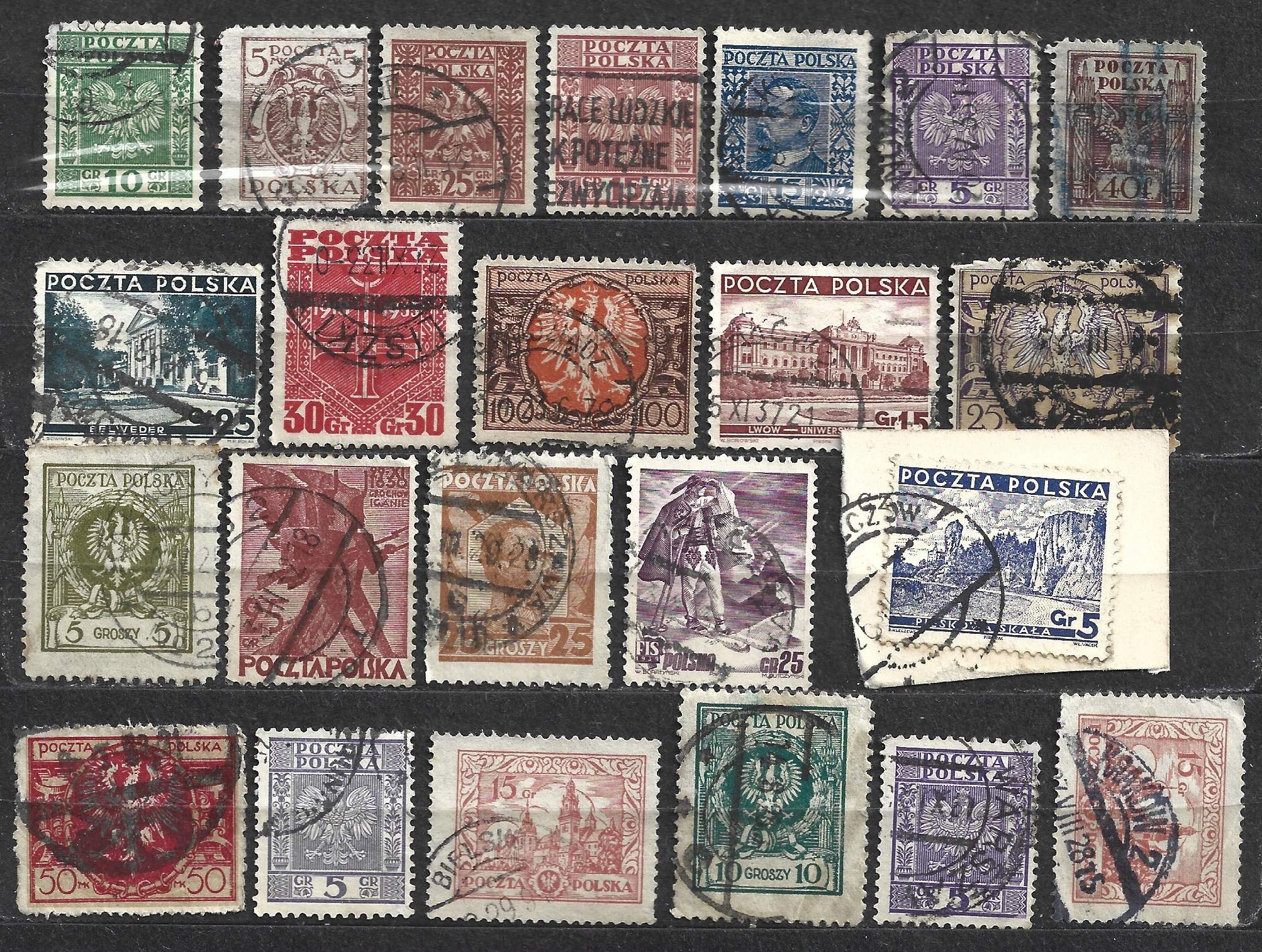 Вторая польская республика, штампы удалены без клея, набор (9)