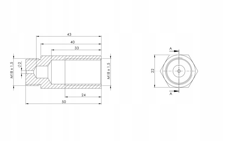 - резьба: наружная М18 х 1,5 внутренняя М18 х 1,5