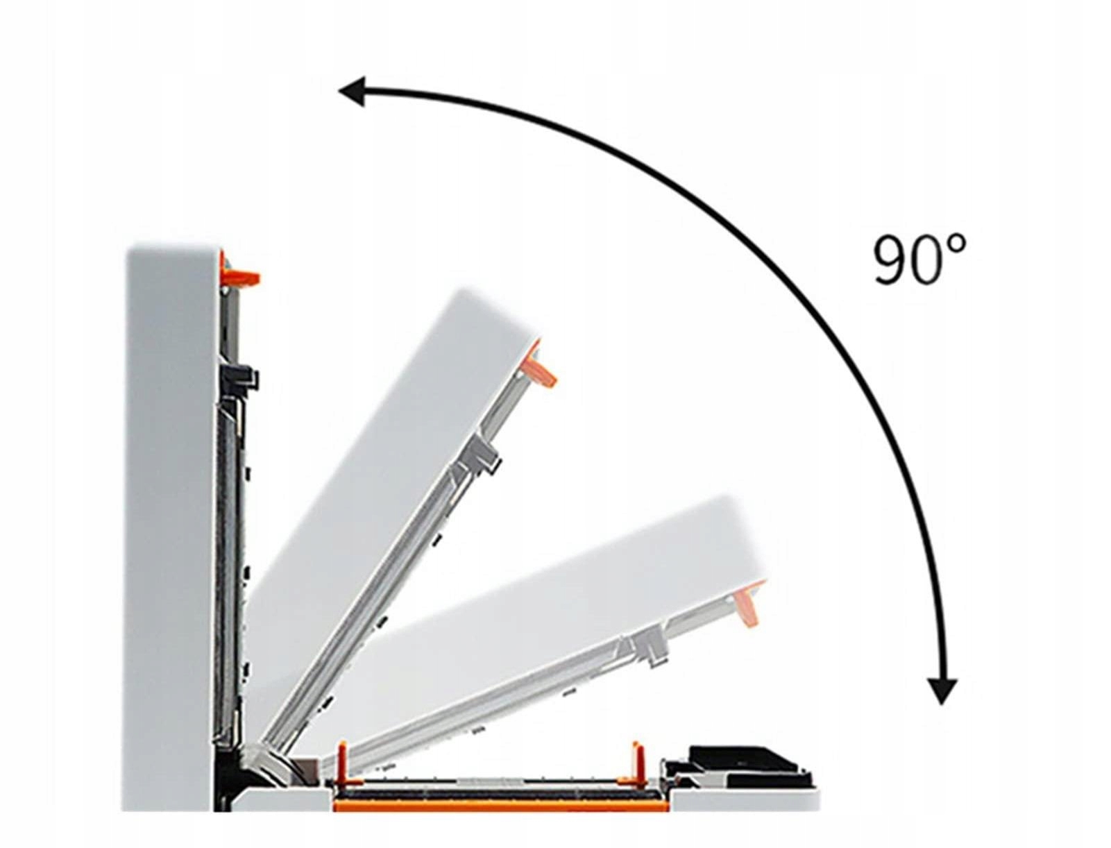 Открытие внутренней части изделия с помощью одной из прорезей, с открыванием до 90°.