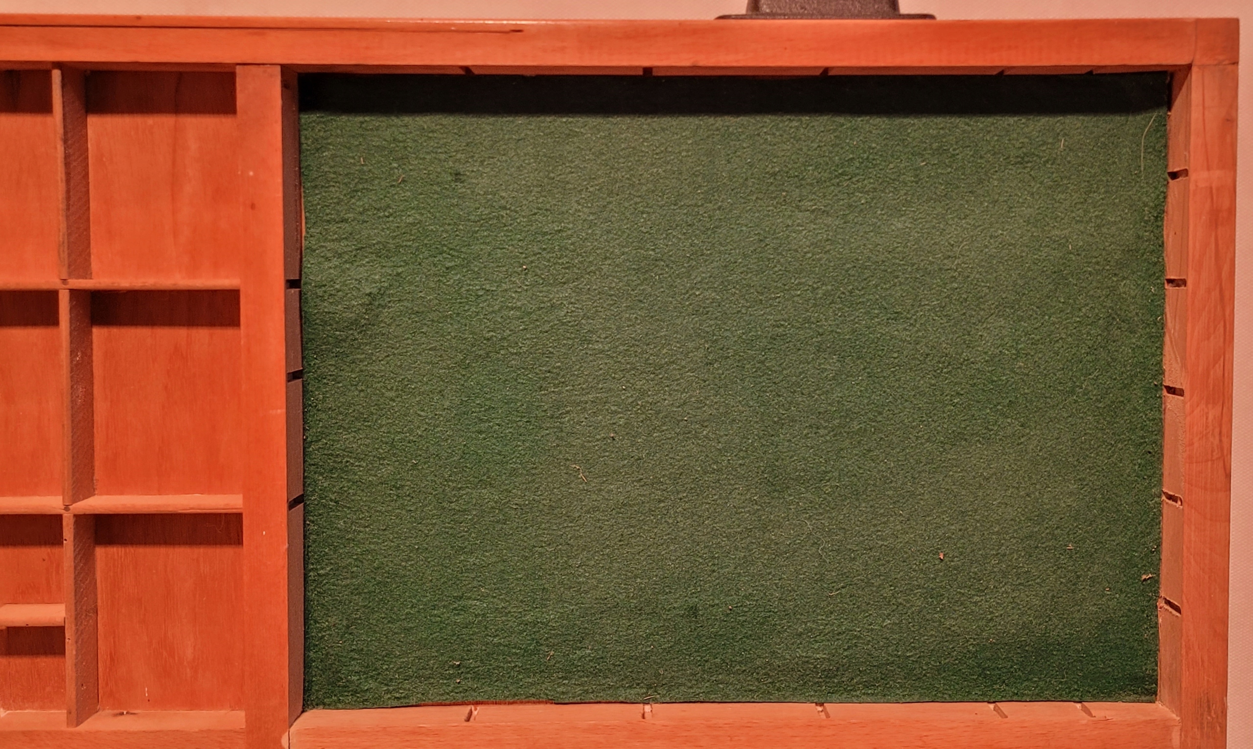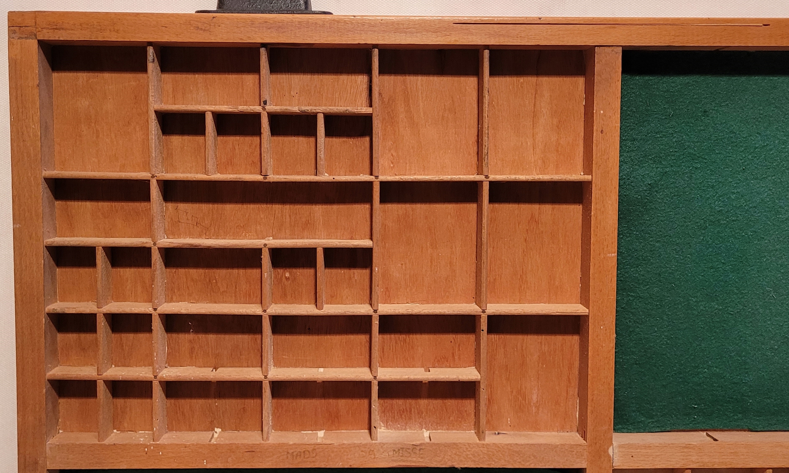 - Сундук - ящик для печати простирается от полки, разделенного на отсеки, в которых подходят шрифты и оправдание. В каши был набор признаков данного типа буквы, в то время как в стойке набор разновидностей и размеров.