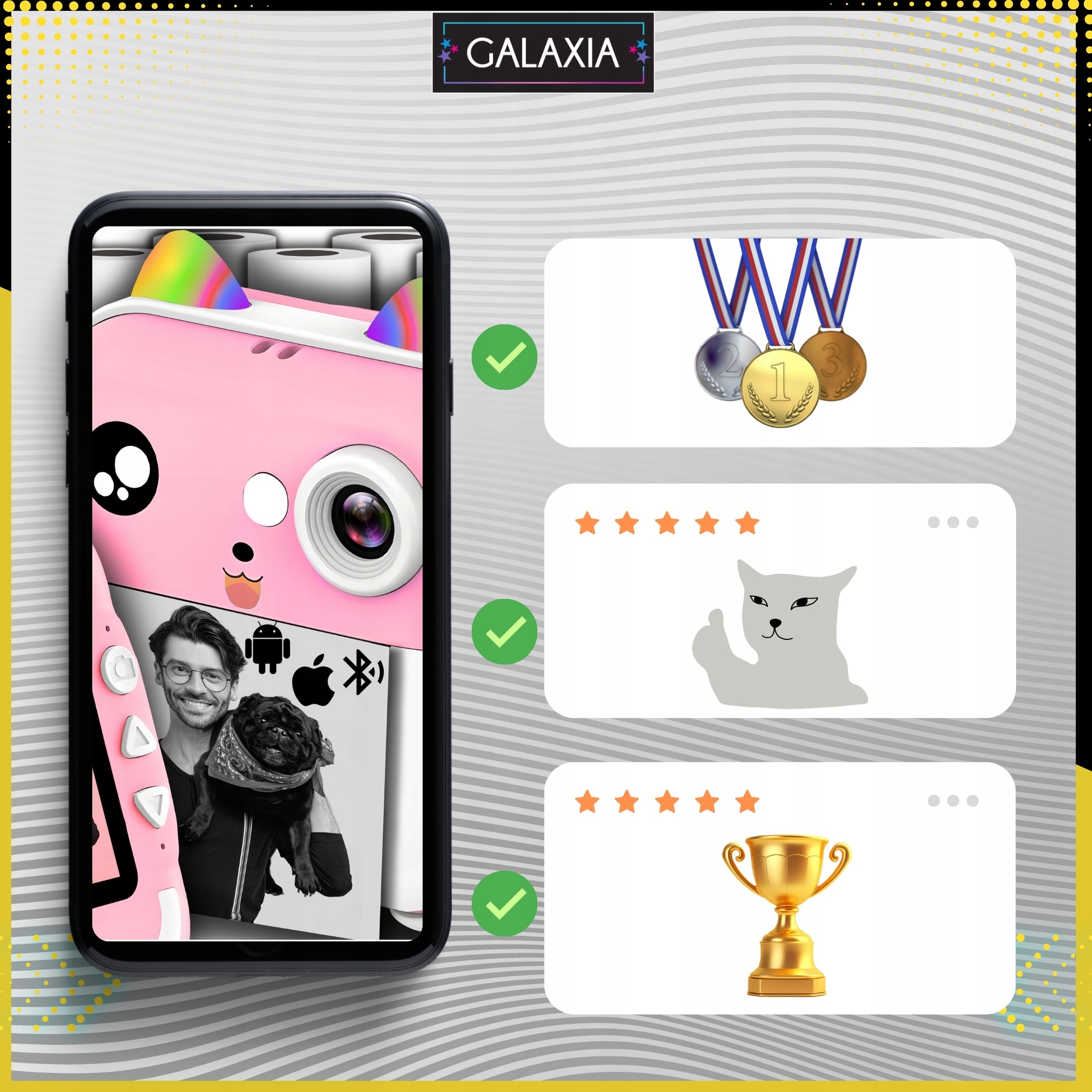 С GALAXIA® мы говорим «нет» скуке! 5 увлекательных обучающих игр, развивающих воображение ребенка и способности — отличное развлечение. GALAXIA® — это не только камера, но и ваш мобильный учитель и партнер по играм!