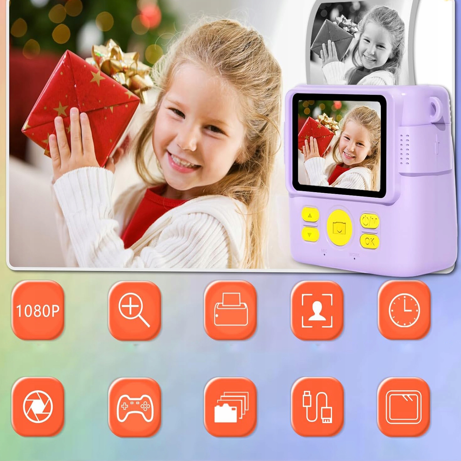 ⭐️ДЕТСКАЯ КАМЕРА С КАРТОЙ ПАМЯТИ 32 ГБ ЗАЩИТНЫЙ ЧЕХОЛ МГНОВЕННЫЙ ТЕРМОПРИНТЕР С IPS-ЭКРАНОМ 2,4 ДЮЙМА⭐️