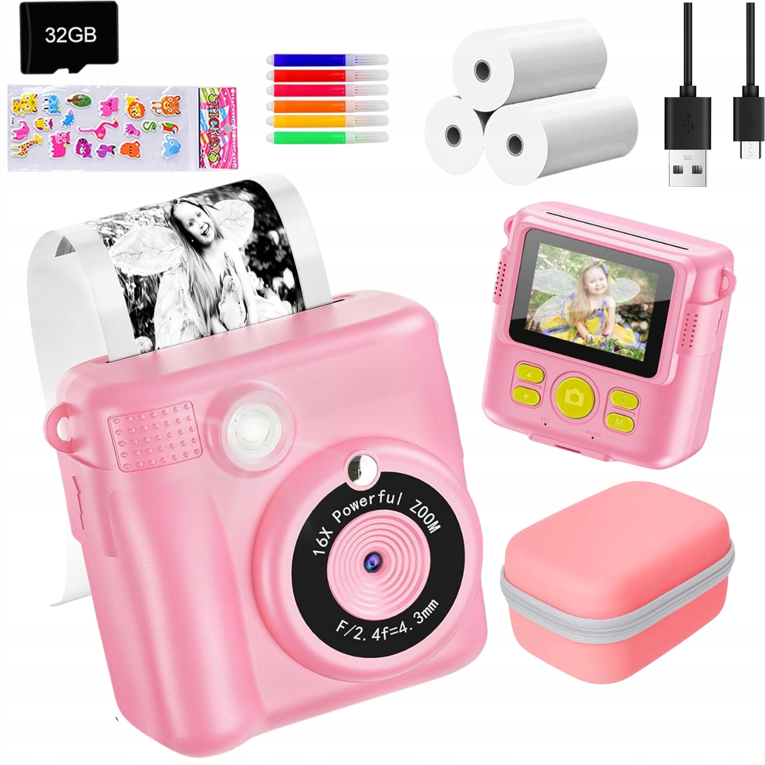 - ✨ Ремешок того же цвета облегчает детям переноску камеры с собой, а 6 цветных маркеров позволяют детям свободно использовать свое воображение и творчество на распечатанных черно-белых фотографиях.
