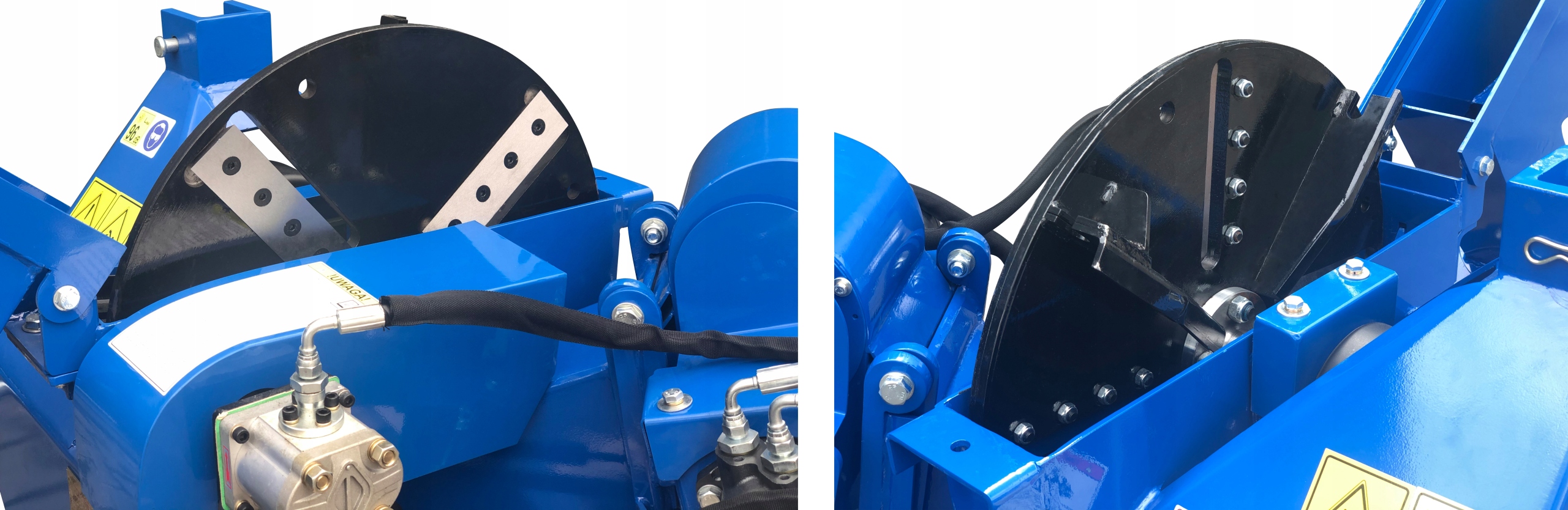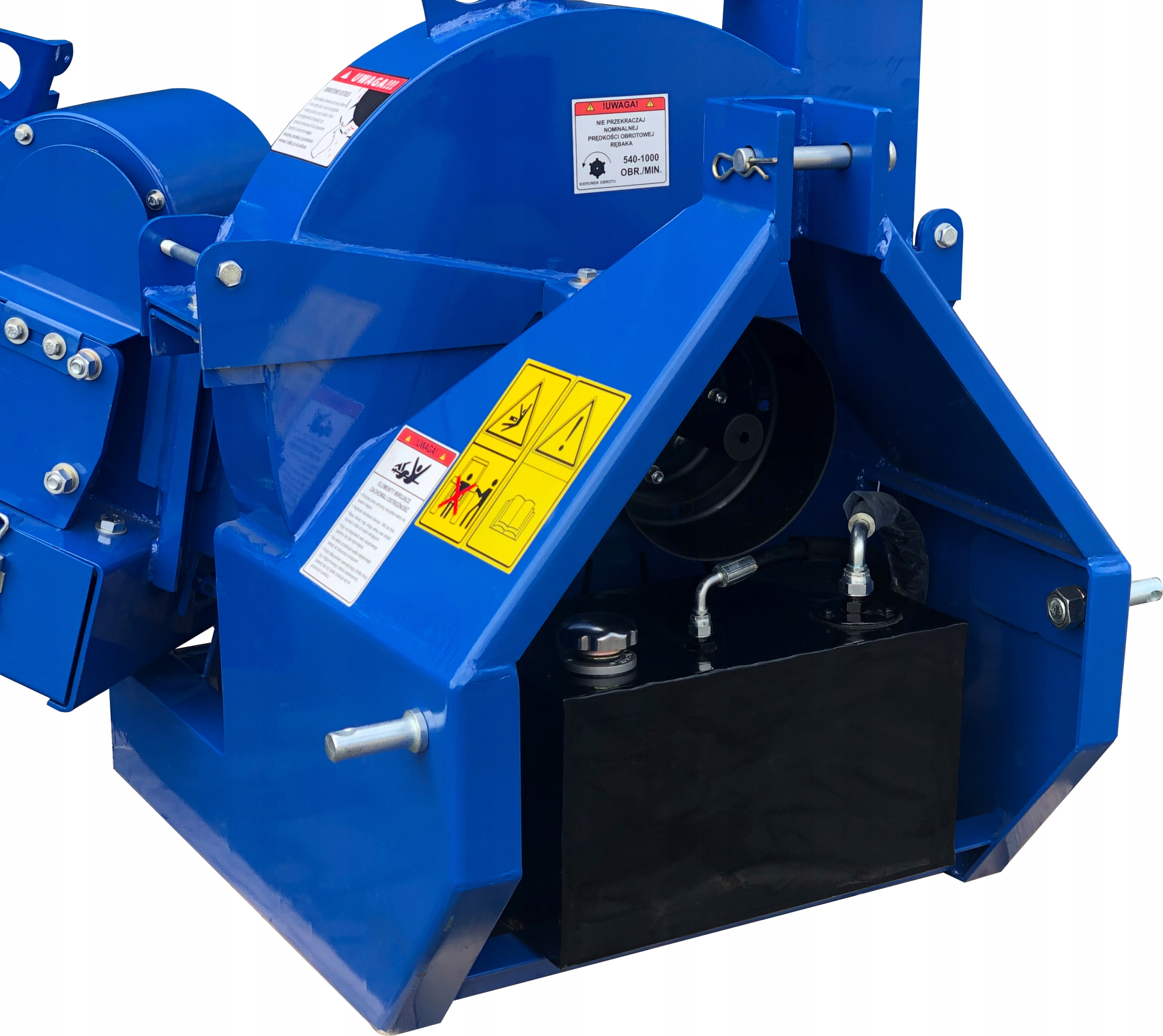 - Привод от трактора на измельчитель передается через трансмиссионный вал, оснащенный предохранительный штифт, который срезается при слишком большой нагрузке на машину и отключает прямой привод.