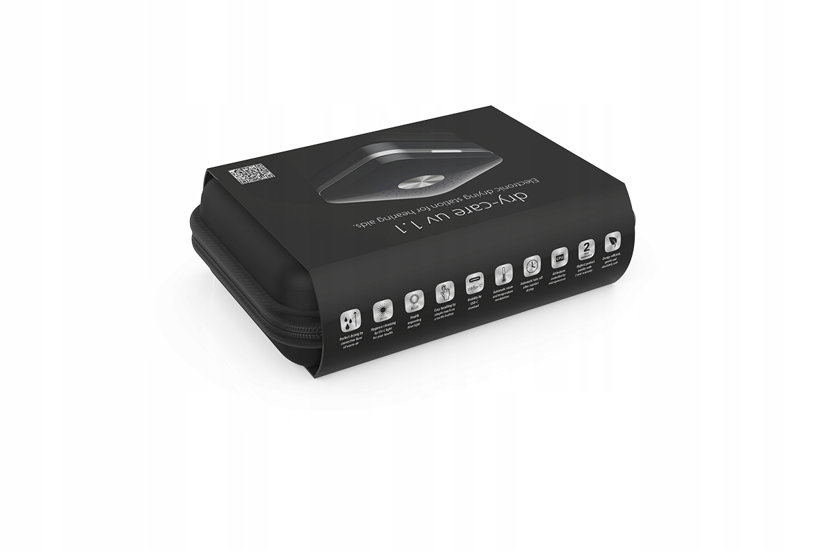 Dry-care uv 1.1 — электронное устройство с дополнительным УФ-излучением -C и встроенный USB-порт для использования дома или в путешествии, а также для хранения и ухода за слуховыми аппаратами с батарейным питанием: заушными (BTE), внутри- внутриканальные модели (ITE), внутриканальные модели (CIC), модели с внешним приемником (RIC), кохлеарные имплантаты или генераторы шума, а также внутриканальные мониторы для музыкантов, акустические затычки и беруши или защитные противошумные устройства. беруши.