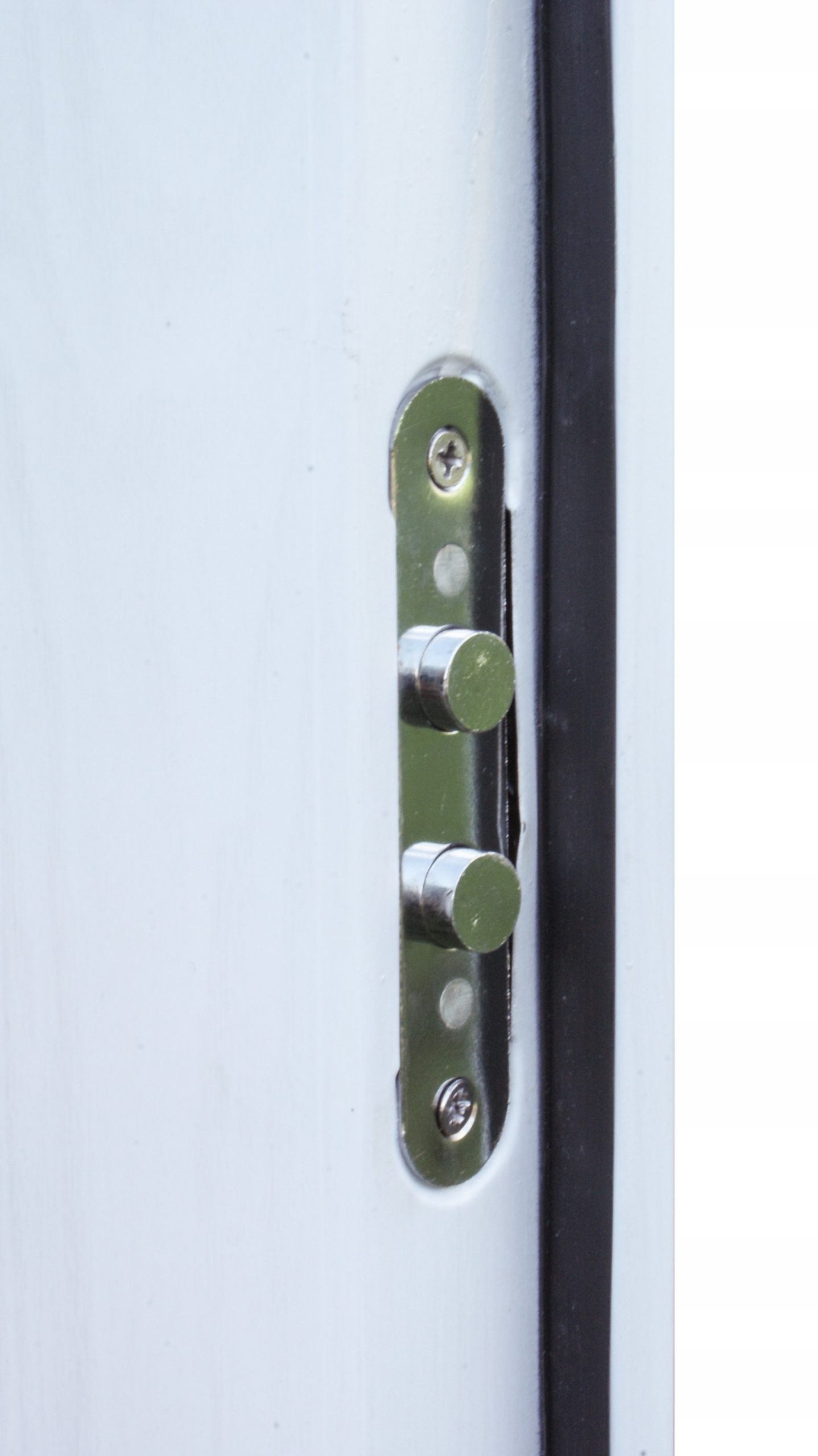 Двери оснащены одним центральным замком с девятью точками запирания, дополнительным дневным замком и четырьмя регулируемыми петлями.