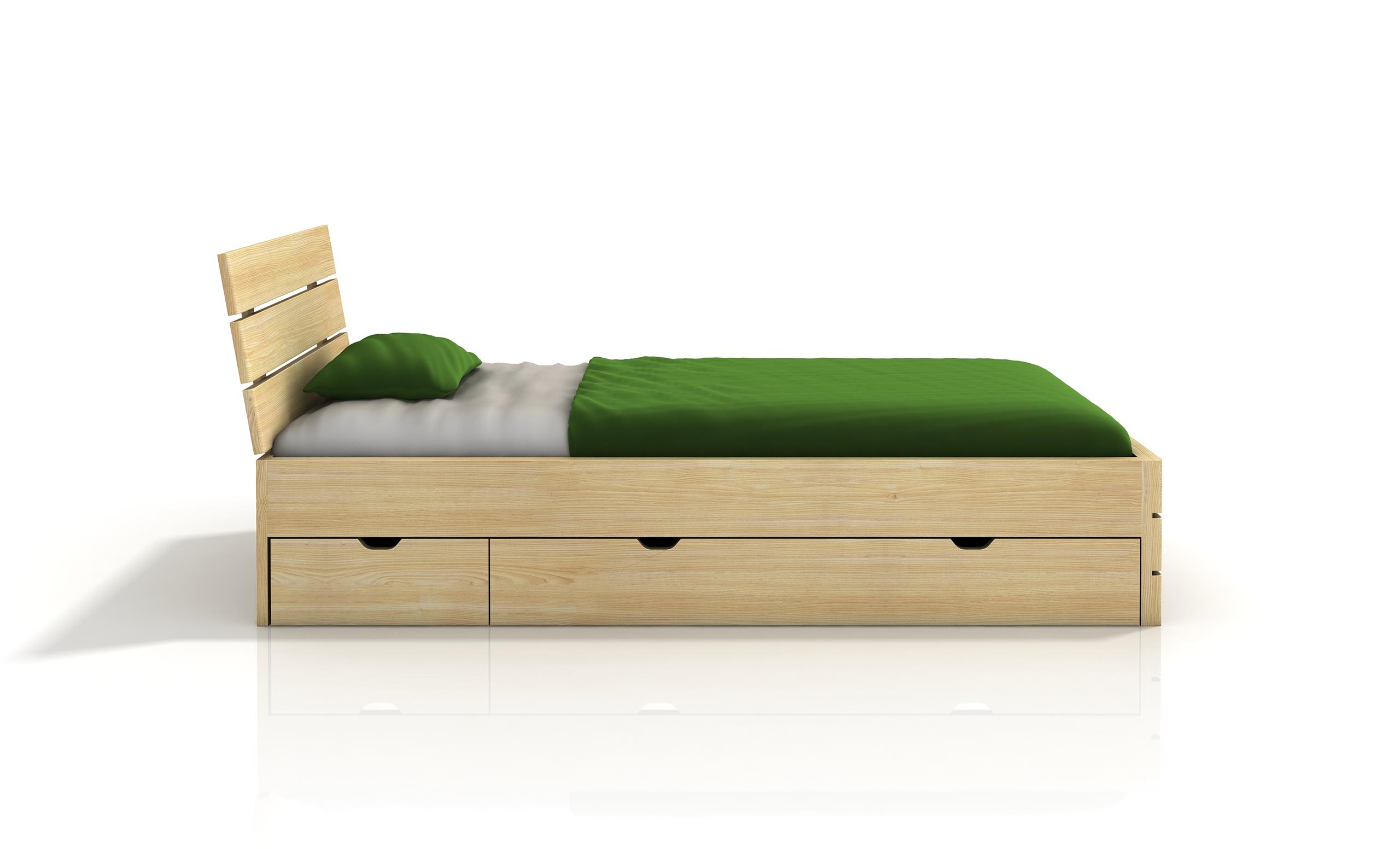 Деревянная кровать Sandemo High с ящиками – очень практичный предмет мебели с привлекательным внешним видом. Просторные ящики передвигаются на колесиках, а вырезанные в их передней части отверстия облегчают их открывание. Поверхность матраса в этой модели кровати будет высотой примерно 50 см, что облегчит утренний подъем. Подголовник, состоящий из трех слегка наклоненных горизонтальных досок, позволит вам удобно откинуться назад и почитать любимую книгу. Кровать Sandemo High – предмет мебели, который очень ценят наши клиенты, стильный и чрезвычайно прочный, он обеспечит комфортный и полноценный отдых. Стабильность и надежность изготовления дополнительно подчеркивают преимущества этой мебели.