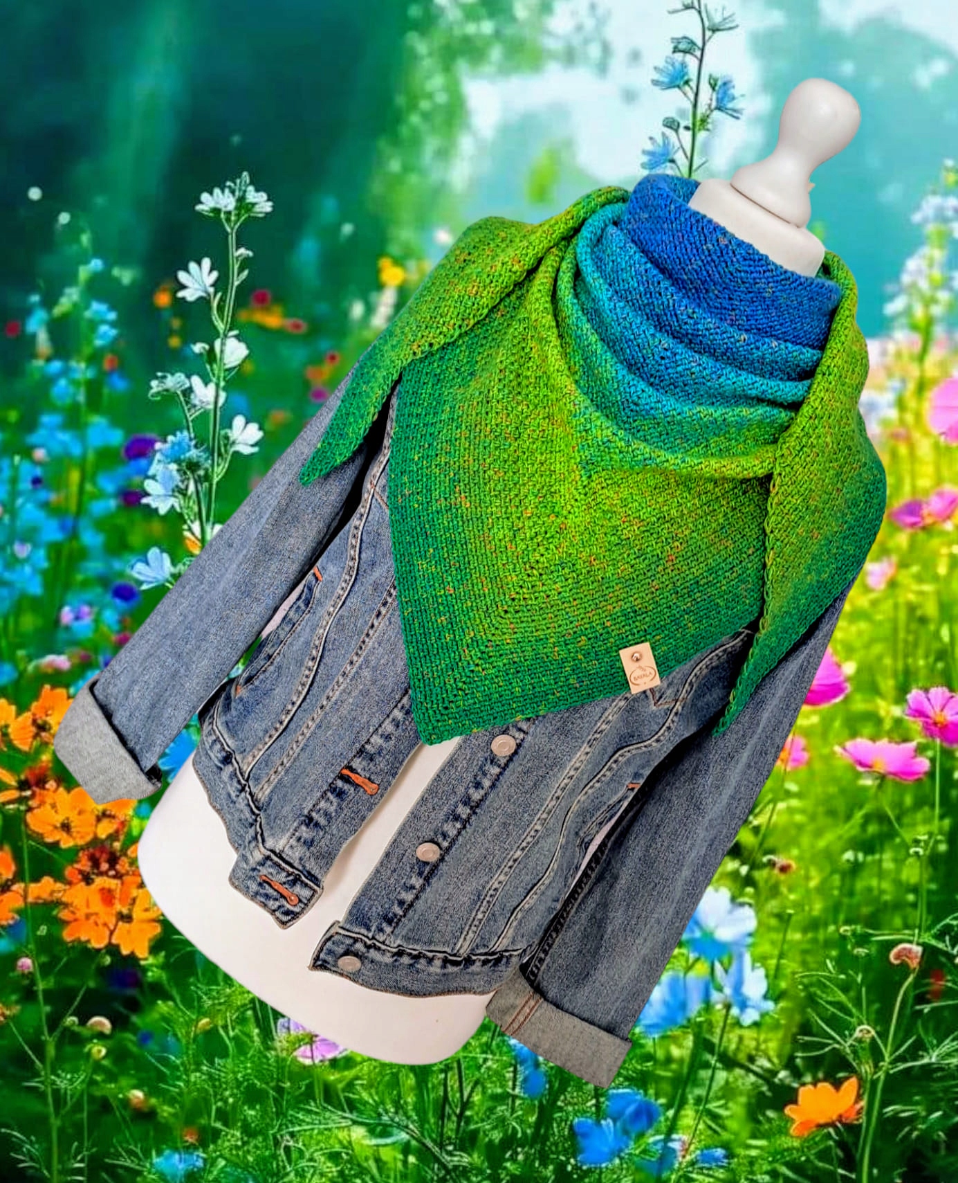 DUŻA CHUSTA SZAL W PIĘCIU WIOSENNYCH KOLORACH OMBRE ROBIONA WZOREM MECH