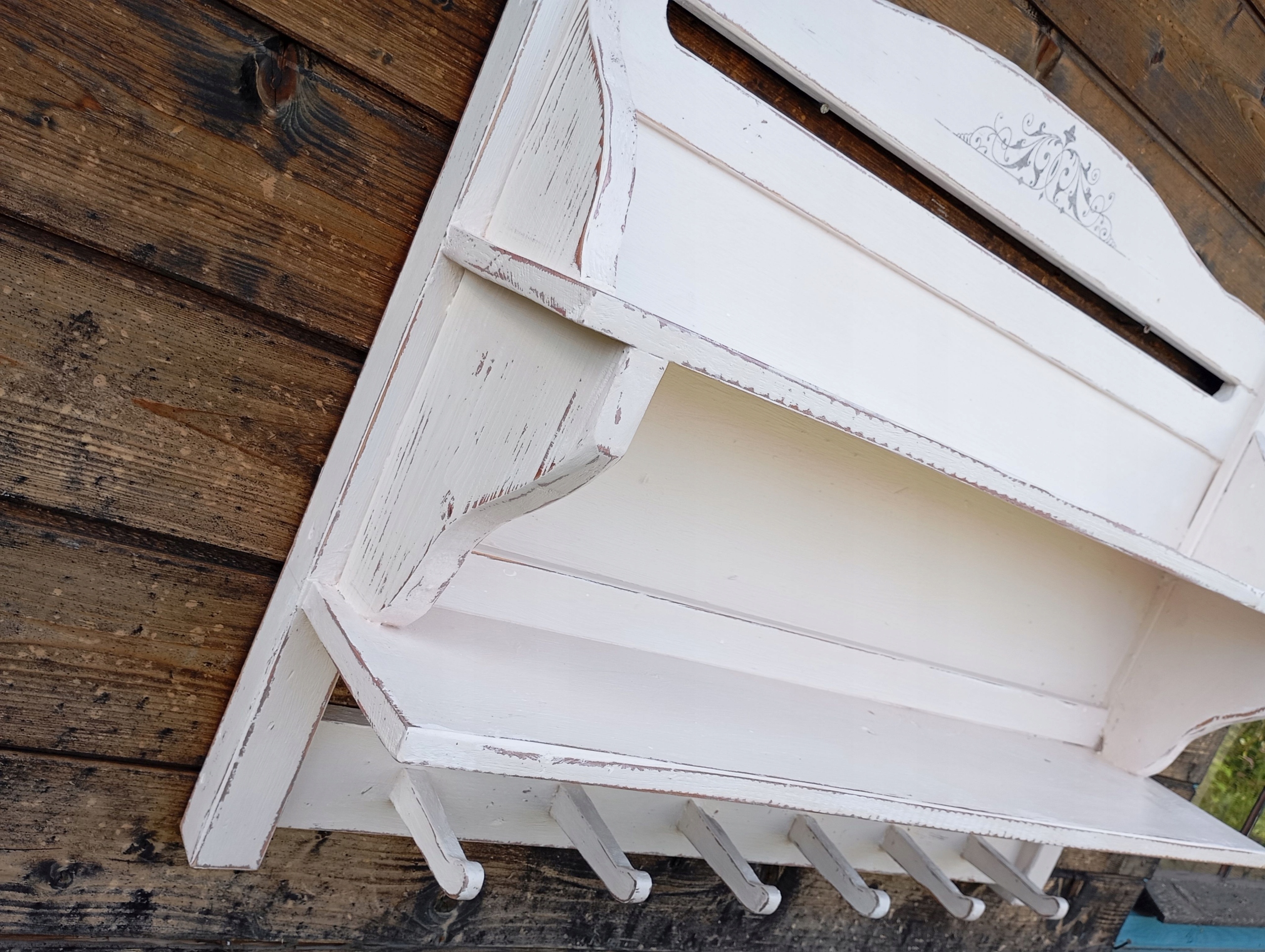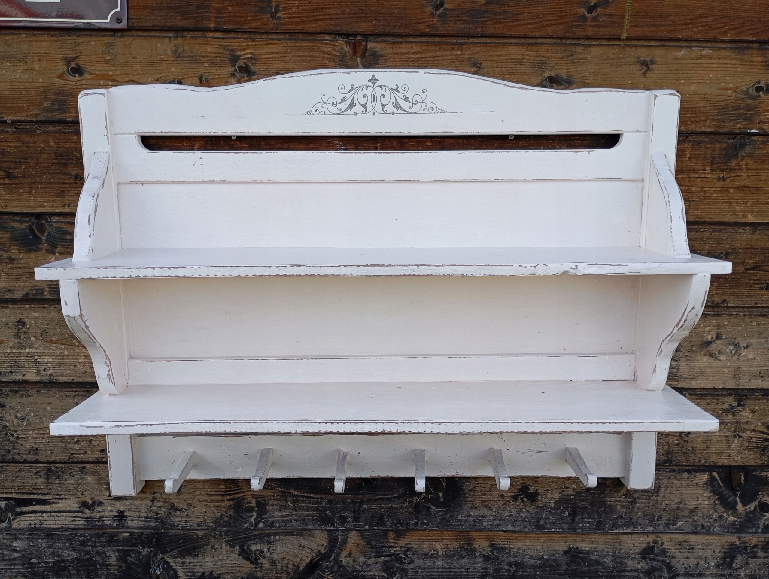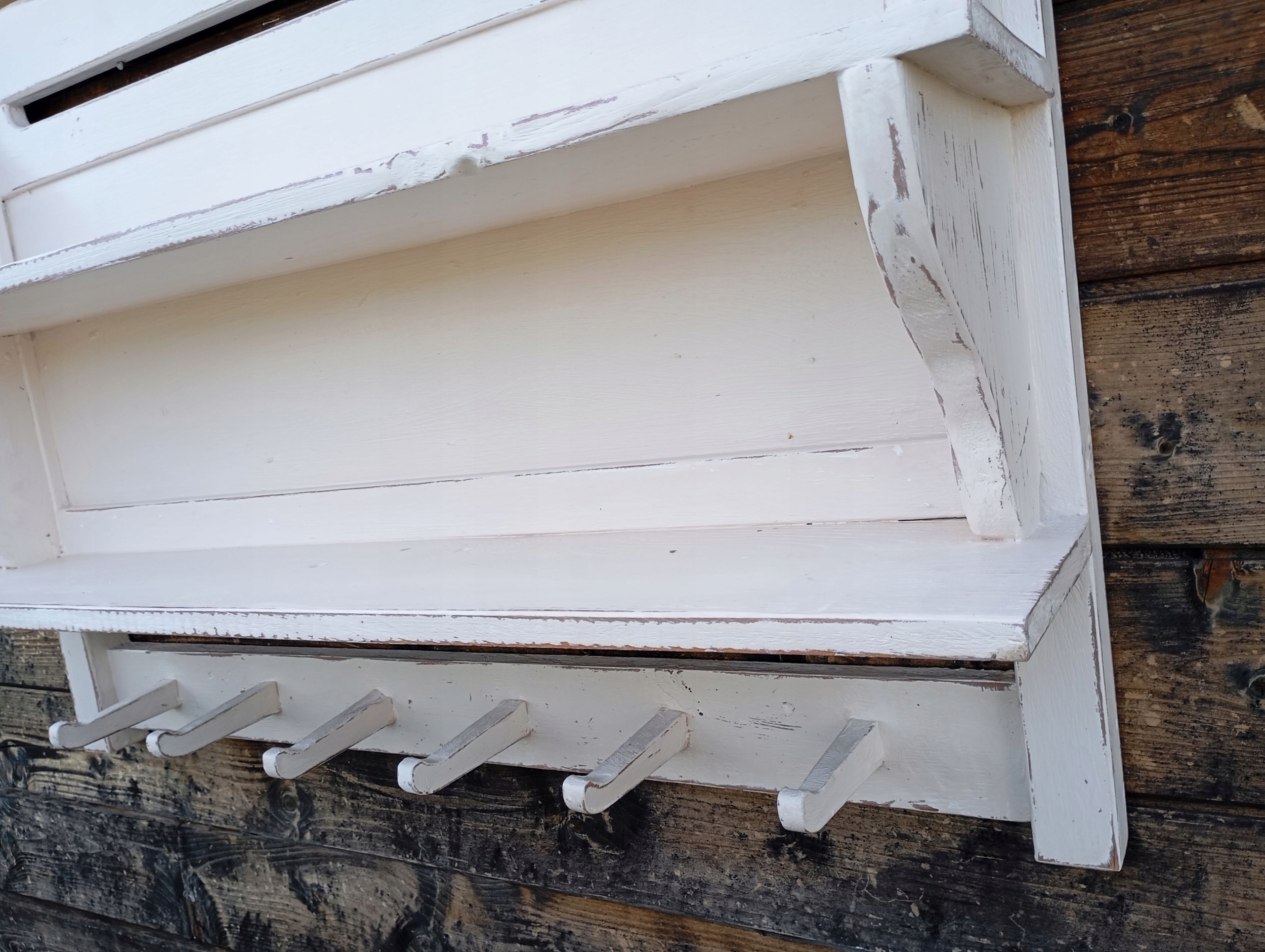 БОЛЬШАЯ ОКРАШЕННАЯ ДЕРЕВЯННАЯ ПОЛКА С ВЕШАЛКАМИ ШАББИ ШИК