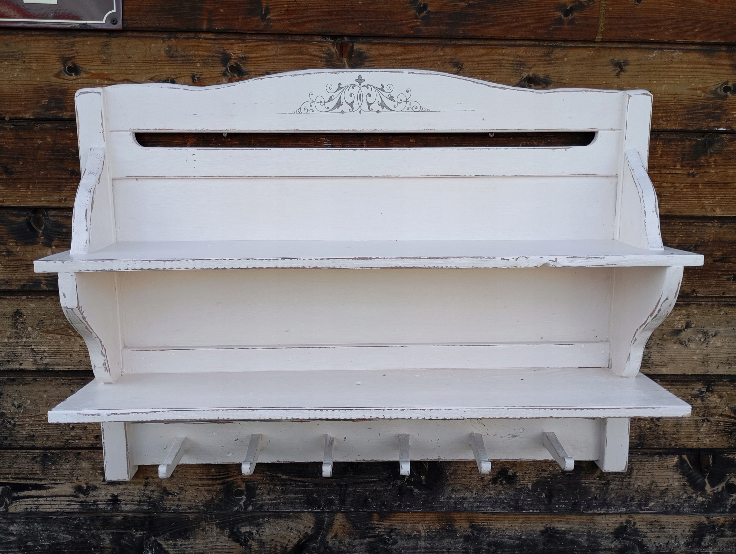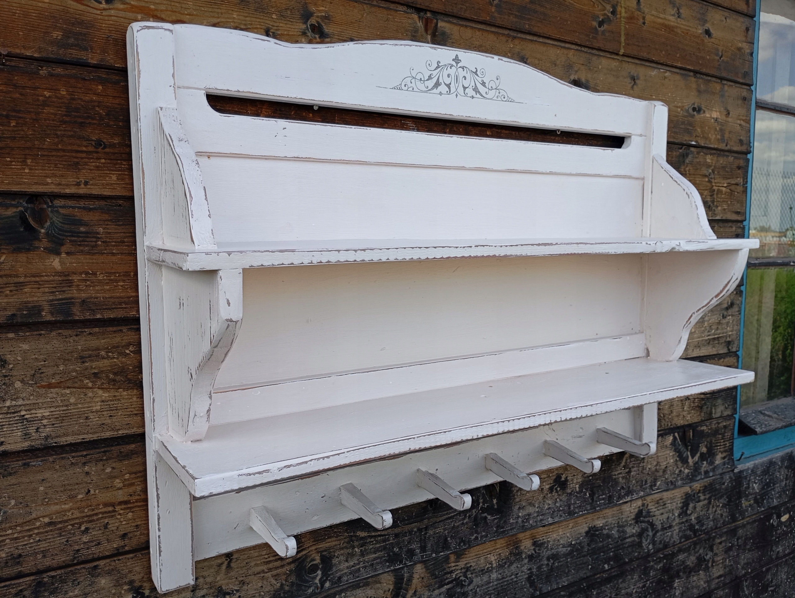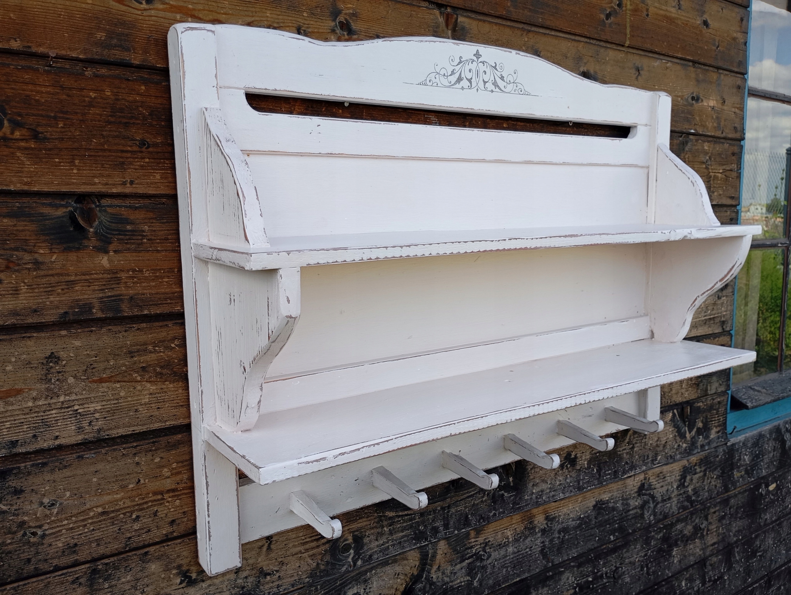 БОЛЬШАЯ ОКРАШЕННАЯ ДЕРЕВЯННАЯ ПОЛКА С ВЕШАЛКАМИ ШАББИ ШИК