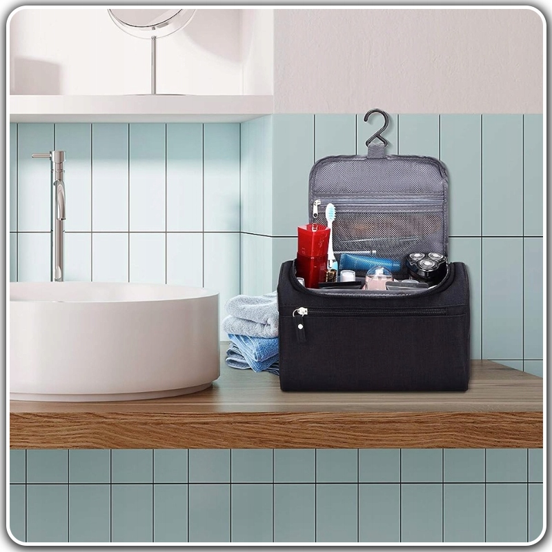 DUŻA KOSMETYCZKA PODRÓŻNA CZARNA MĘSKA POJEMNA KUFEREK NA KOSMETYKI