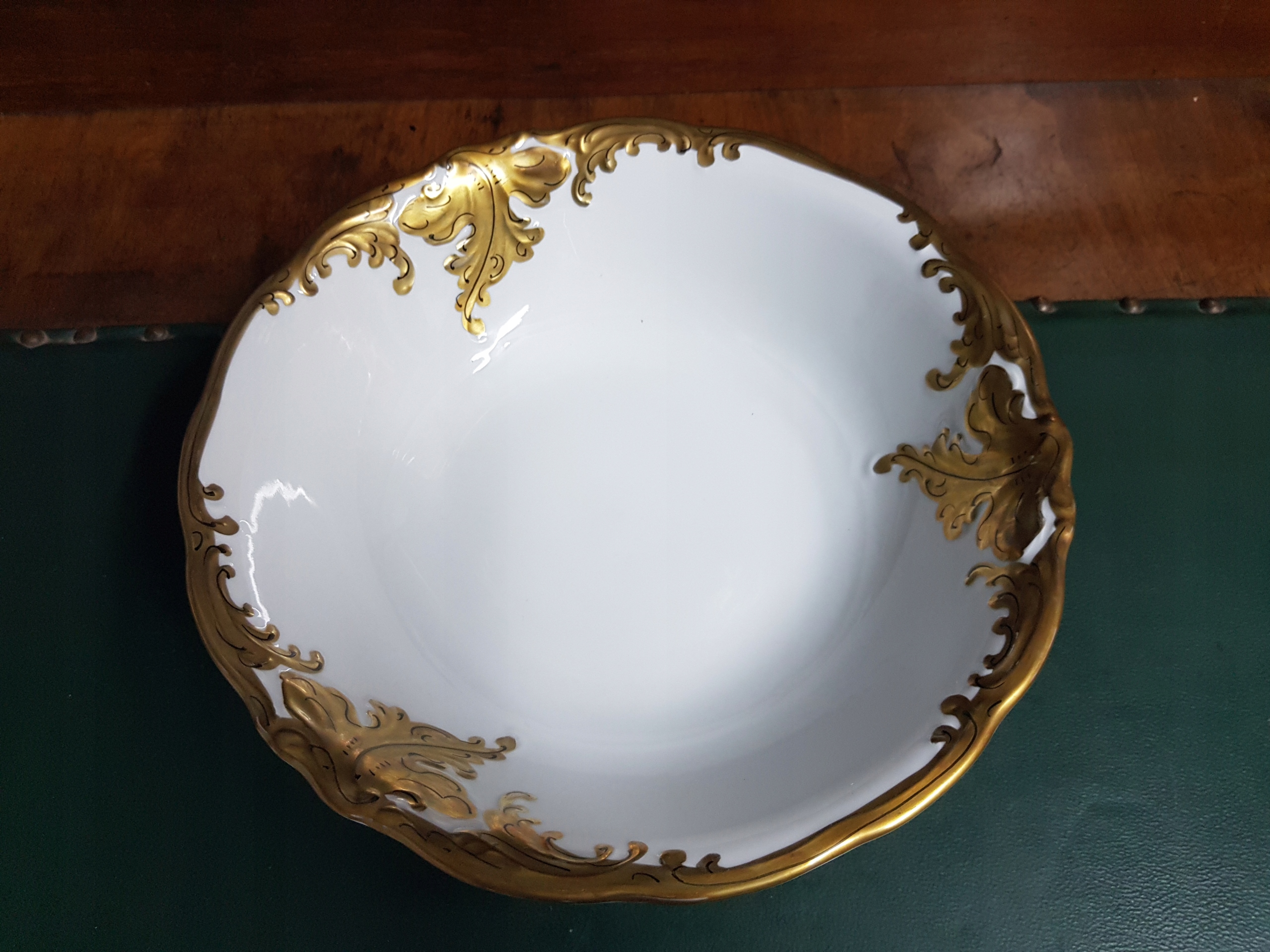 Предмет аукциона – большой салатник Wawel Złoty Liść Позолоченные края. Белый фарфор.