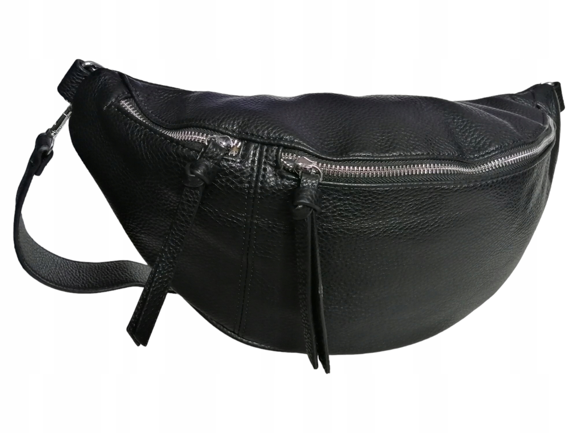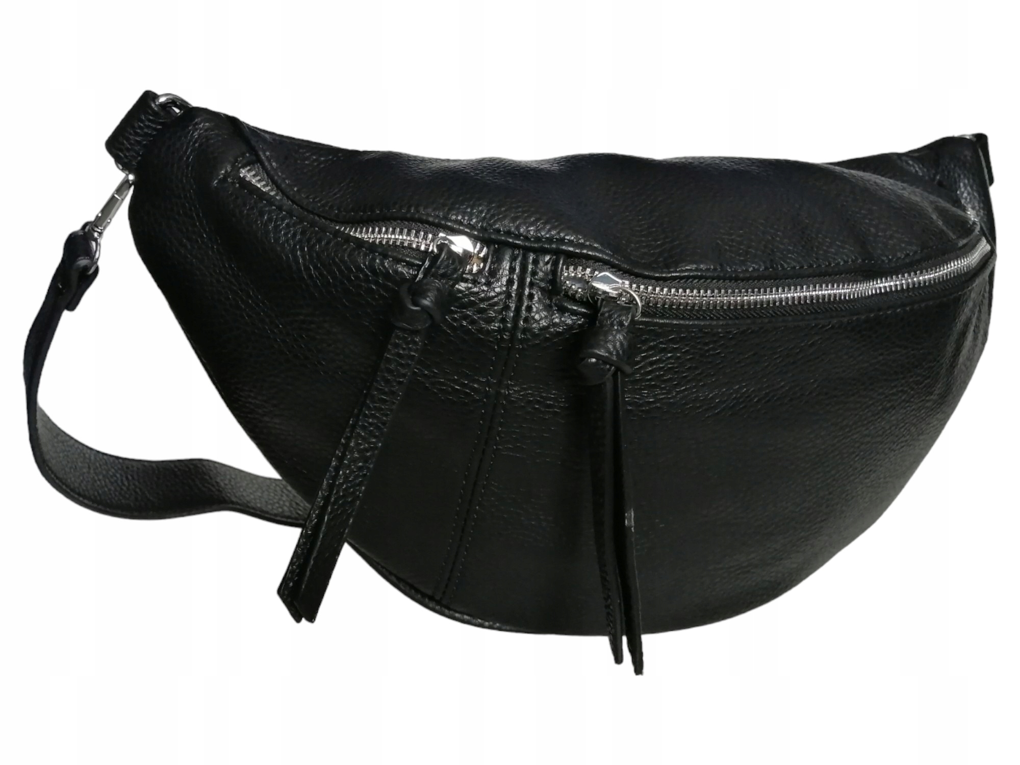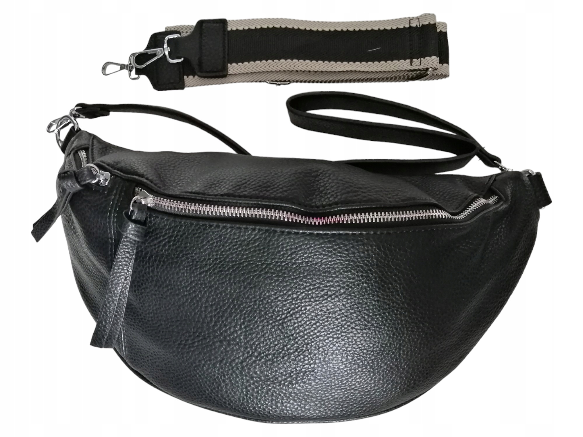 DUŻA TOREBKA SASZETKA, NERKA DAMSKA, CZARNA TORBA NA RAMIĘ (2 PASKI)