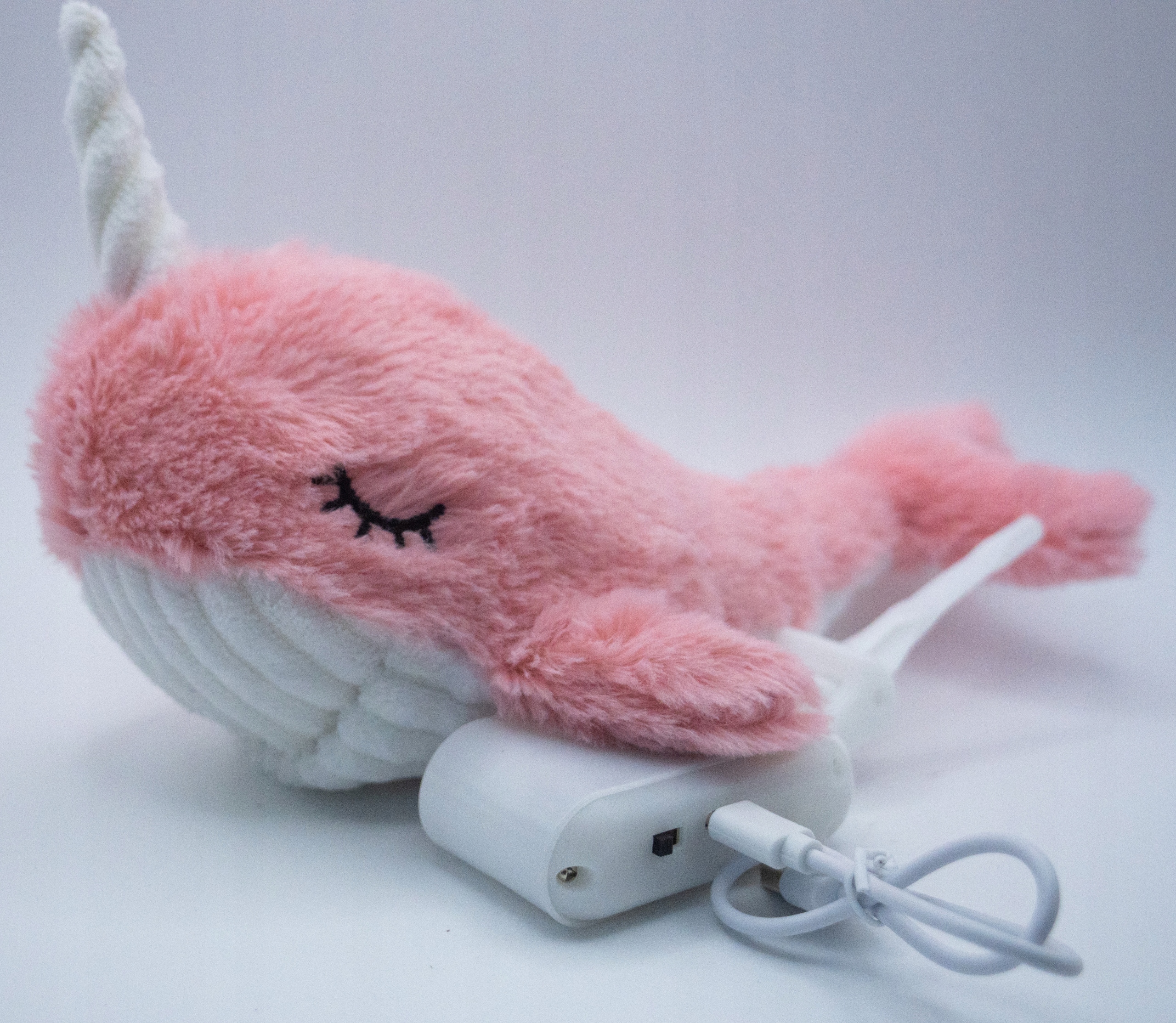 DUŻA ZABAWKA INTERAKTYWNA PLUSZOWA DLA KOTA 27CM NARWAL KABEL USB RUSZA SIĘ