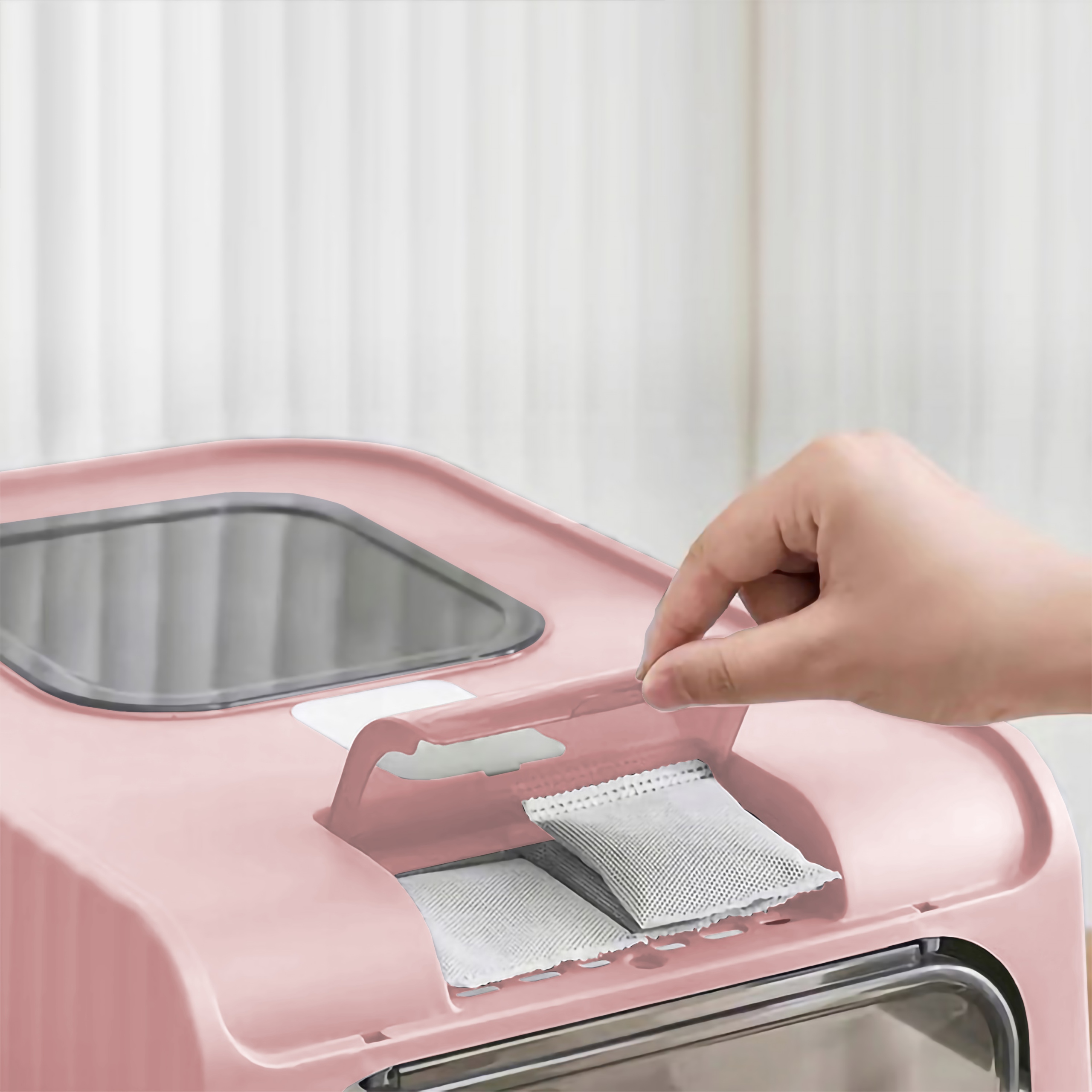 - 4️⃣ Установите верхнюю крышку на боковые стенки туалетного лотка. туалетный лоток.