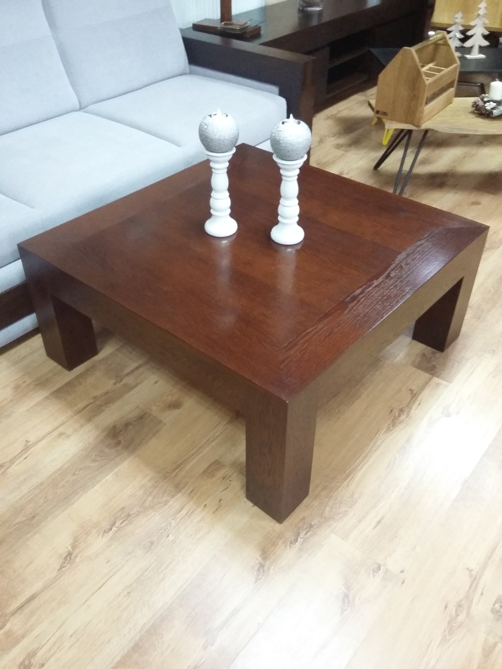ДУБОВА ЛАВА КУБУС КАВОВИЙ СТОЛ 100х100 СТРІЧКА