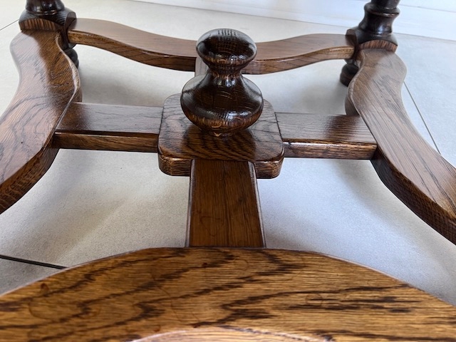 Дубовая скамейка из массива дерева. Очень хорошенькая. Ножки соединены красивым крестом. Он находится в хорошем состоянии. Повреждений и дефектов нет. Имеет типичные следы использования. Скамейка готова к установке.