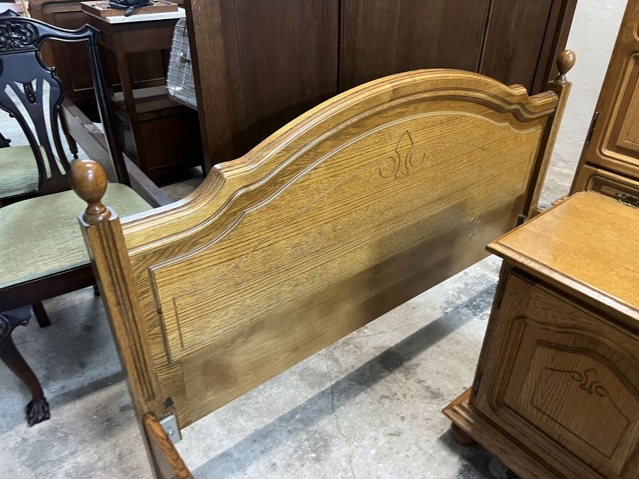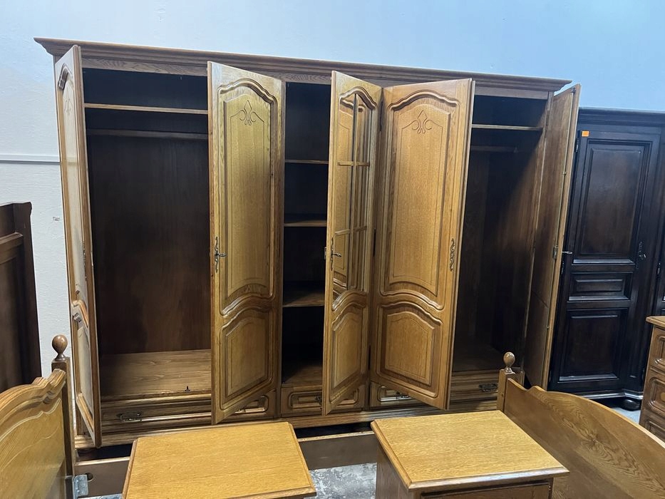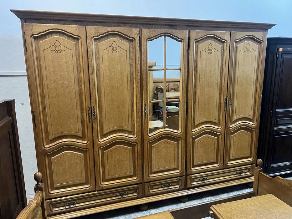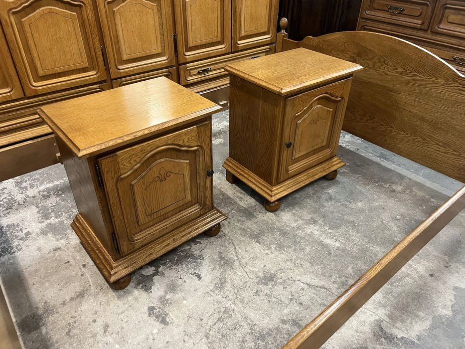 Предмет продажи — красивая дубовая спальня, состоящая из: 5-дверного шкафа, комода, 2-х прикроватных тумбочек и кровати с каркасом (каркас 140/190). Очень хорошее состояние. На наборе имеются незначительные обычные признаки использования. Возможность покупки в рассрочку. Возможен транспорт или личный самовывоз. Товар доступен в магазине в Пионках.