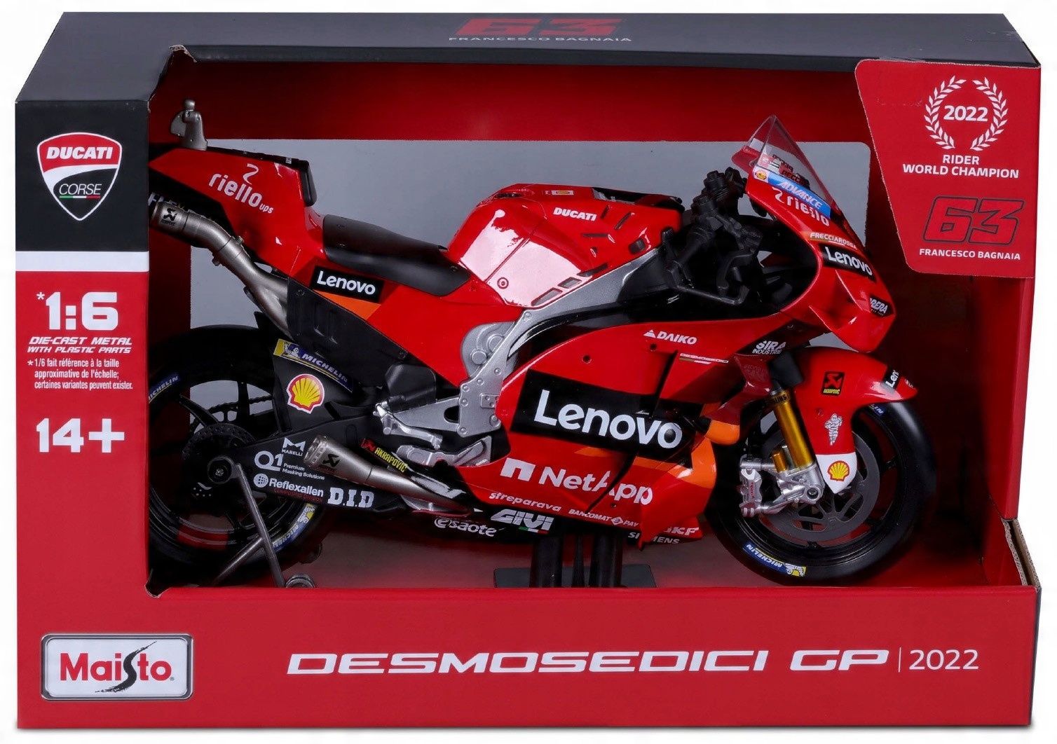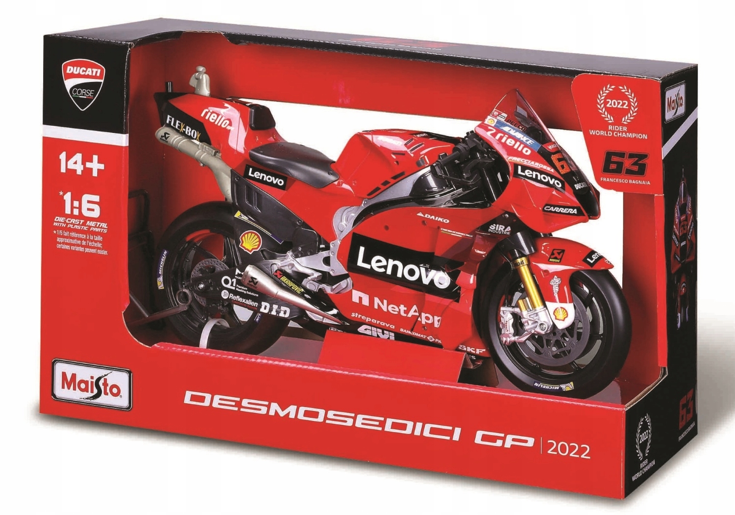 Ducati Desmosedici GP22 #63 F. Bagnaia Moto GP 2022 Lenovo Team Maisto 1: 6