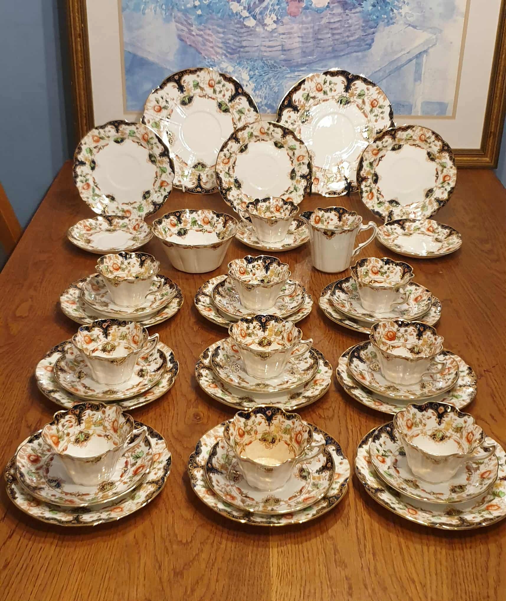 DUCHESS CHINA - okazały, antyczny serwis herbaciany Imari, ręczne złocenia