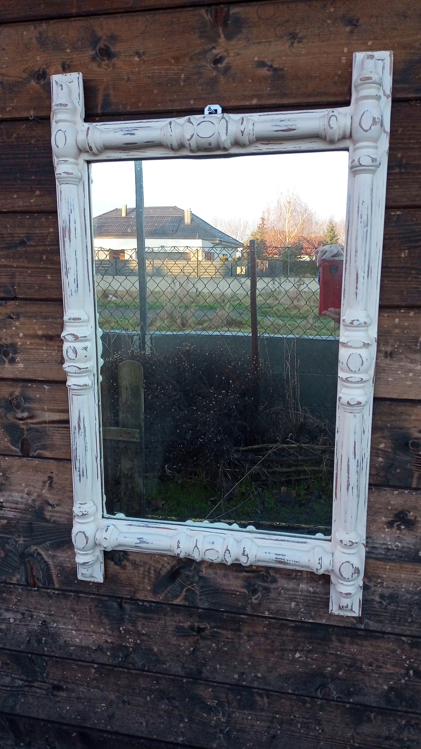 DUŻE LUSTRO W POSTARZANEJ RAMIE, SHABBY CHIC