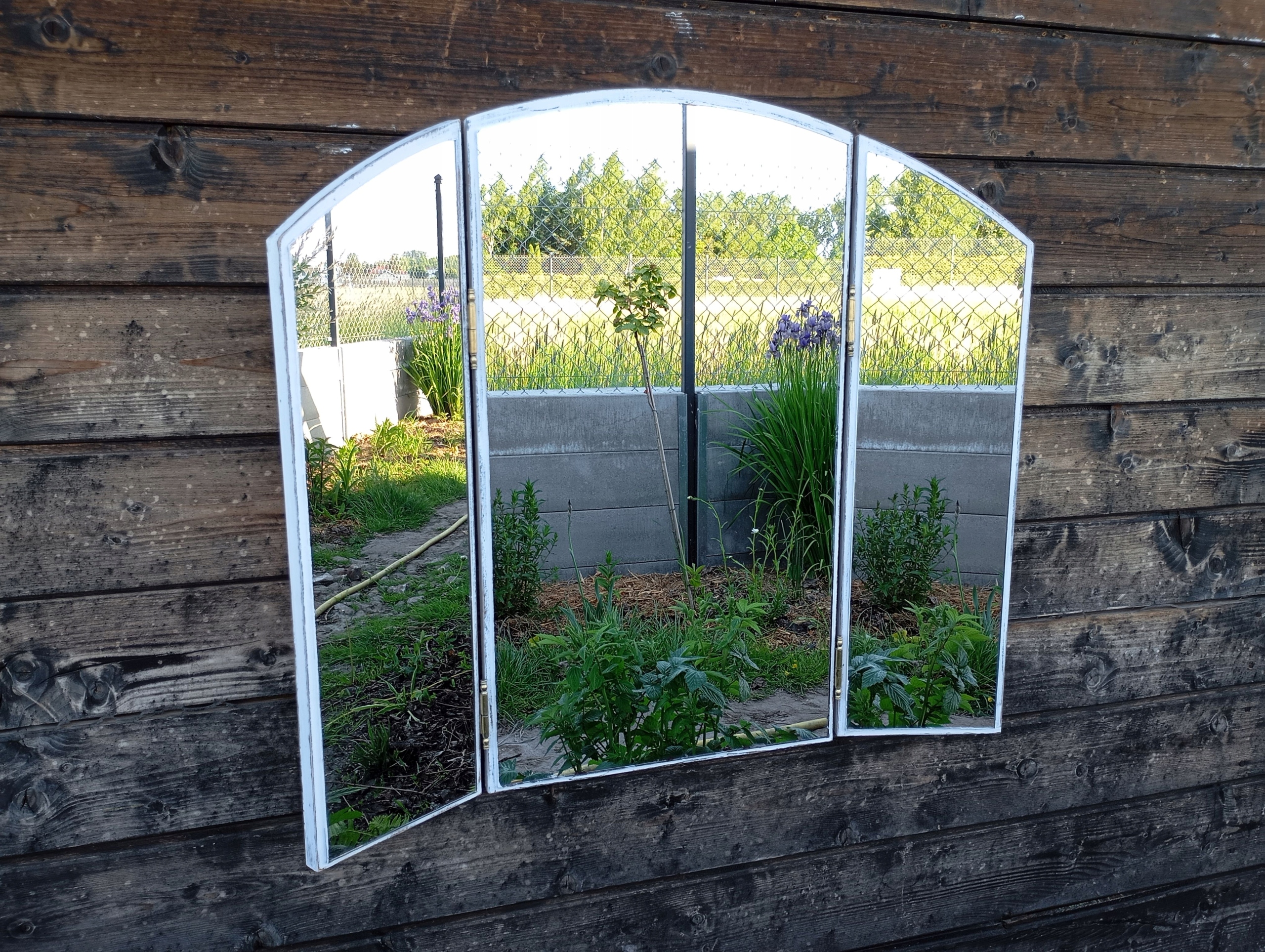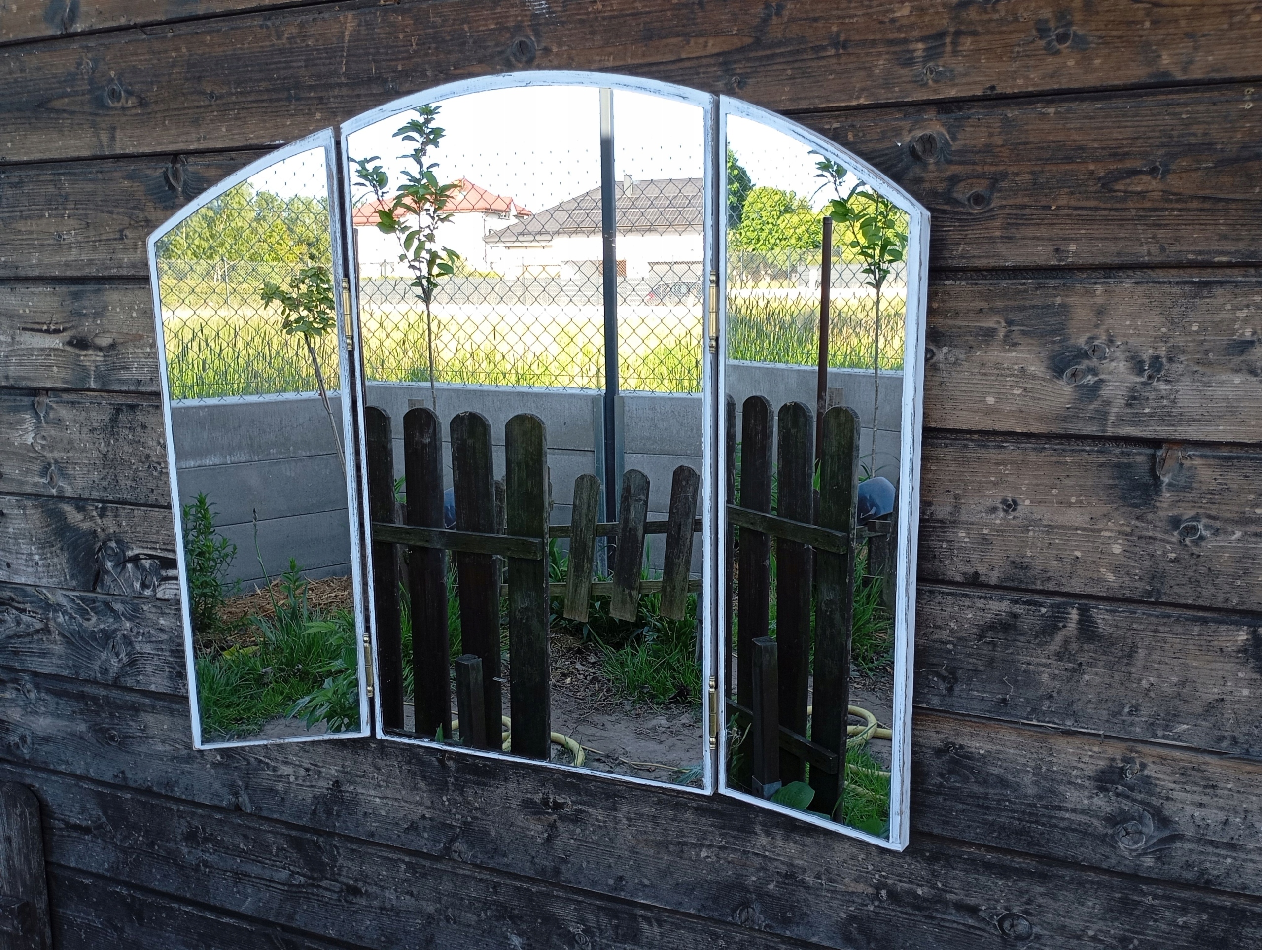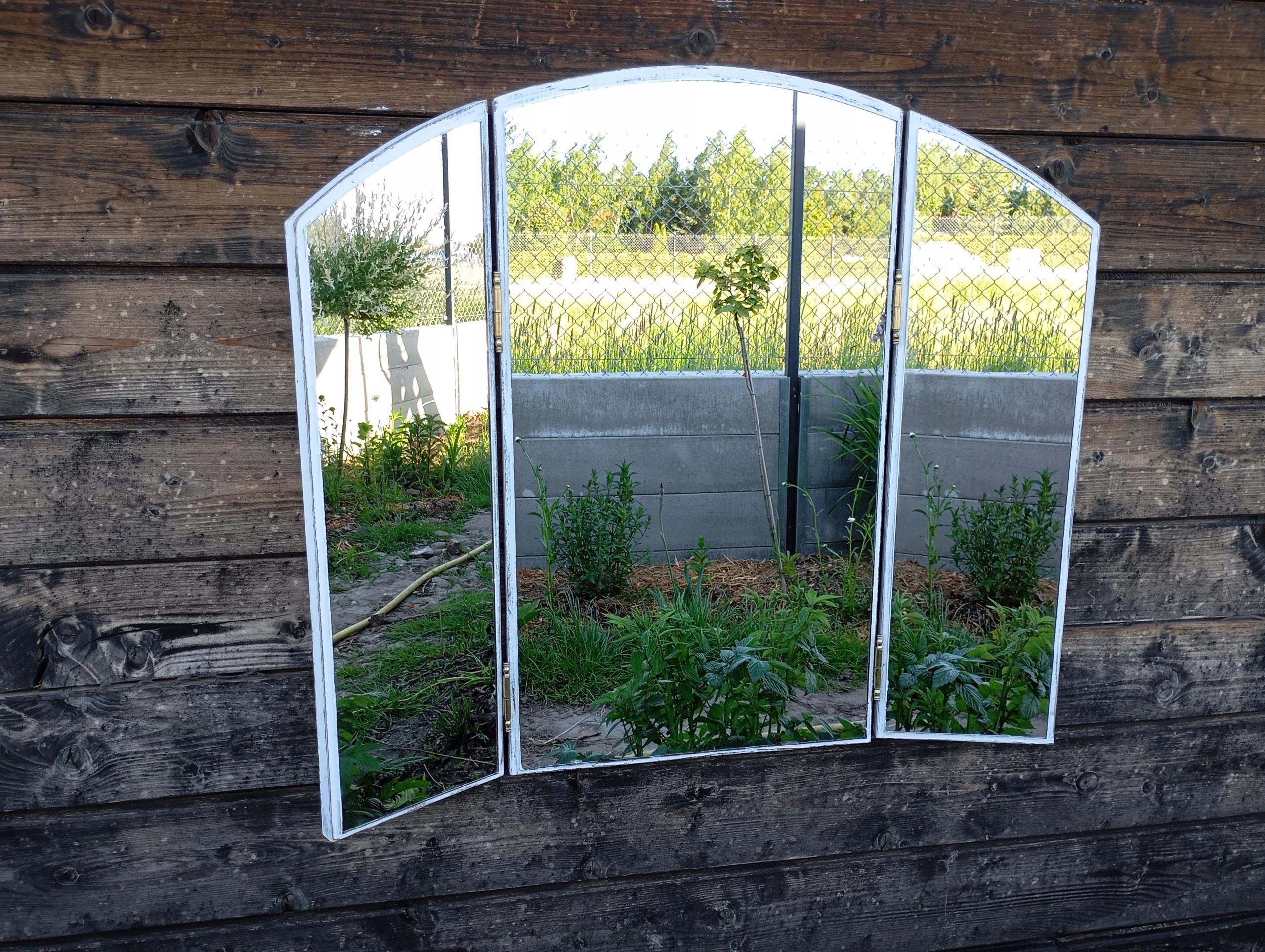 DUŻE ROZKŁADANE LUSTRO W POSTARZANEJ RAMIE, SHABBY CHIC