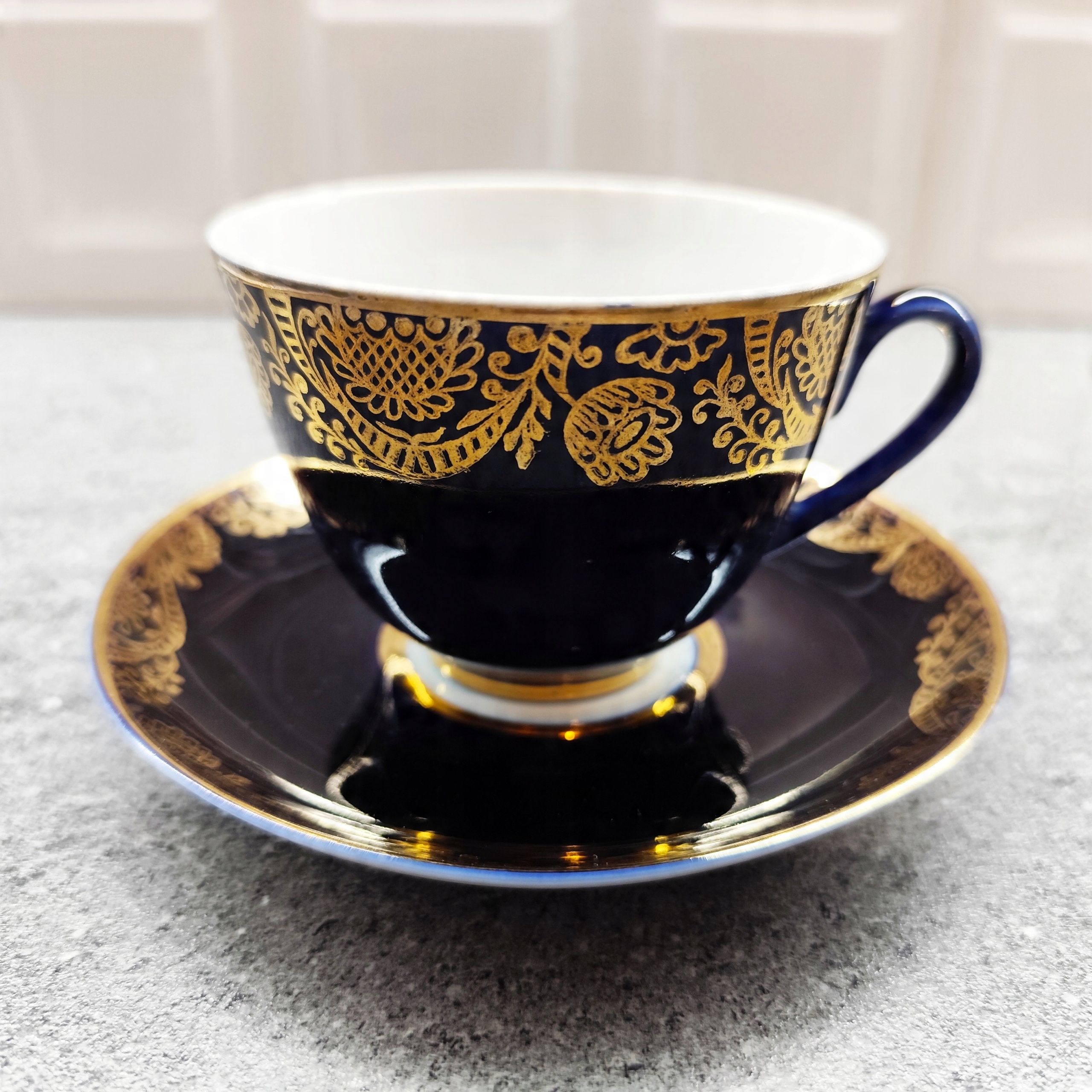 Duo Фарфоровое кобальт -ламоносов кобальт -чашка с подставкой
