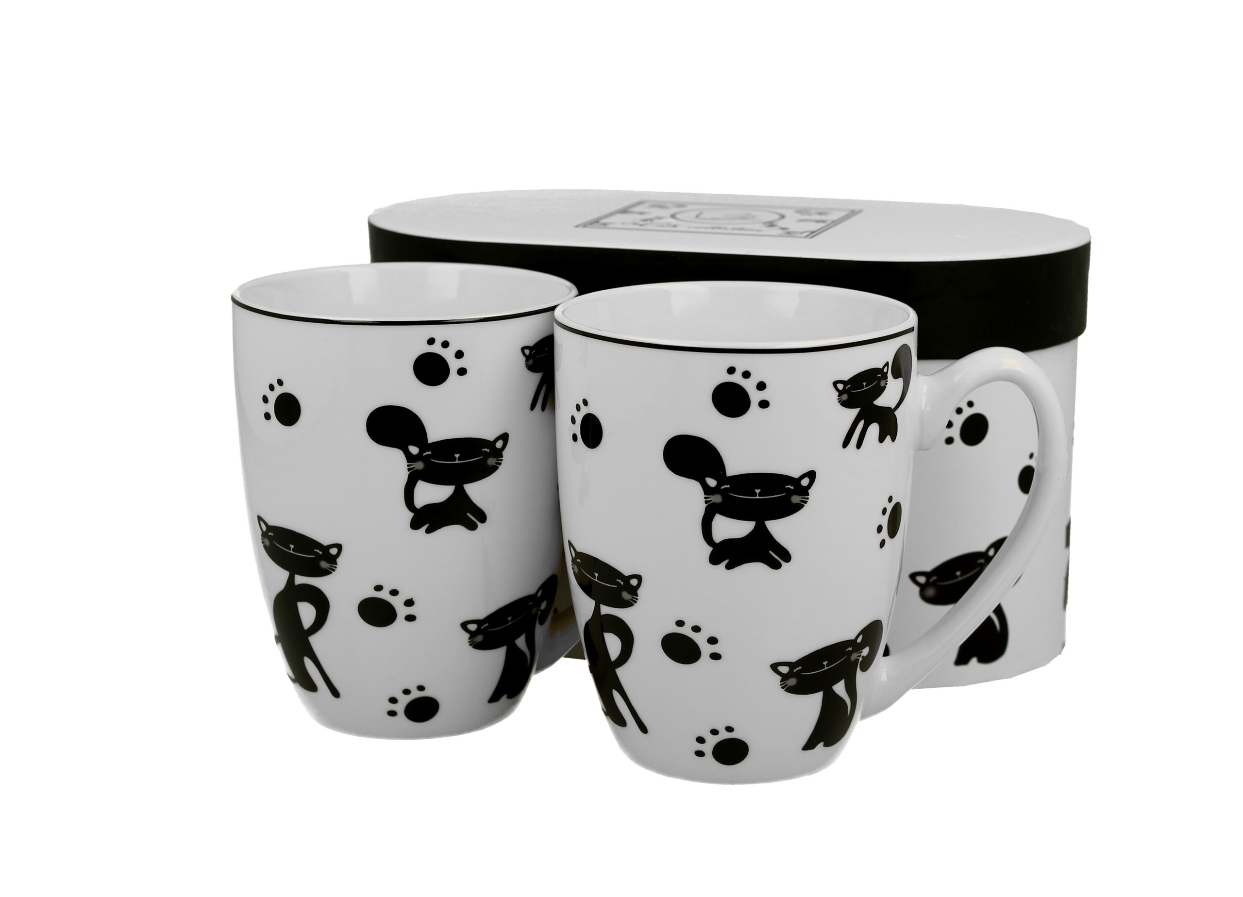 Набор из двух чашек 380 мл Черные кошки включены в серию животных , изготовленные из фарфора нового костяного фарфора, характеризующегося элегантным и натуральным кремом - белый цвет с деликатным блеском, а также исключительной силой