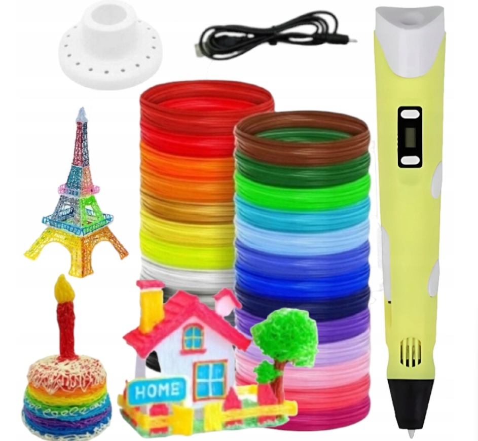 DŁUGOPIS 3D DLA DZIECI DRUKARKA 3D PEN ŻÓŁTY + WKŁAD 210m ZESTAW