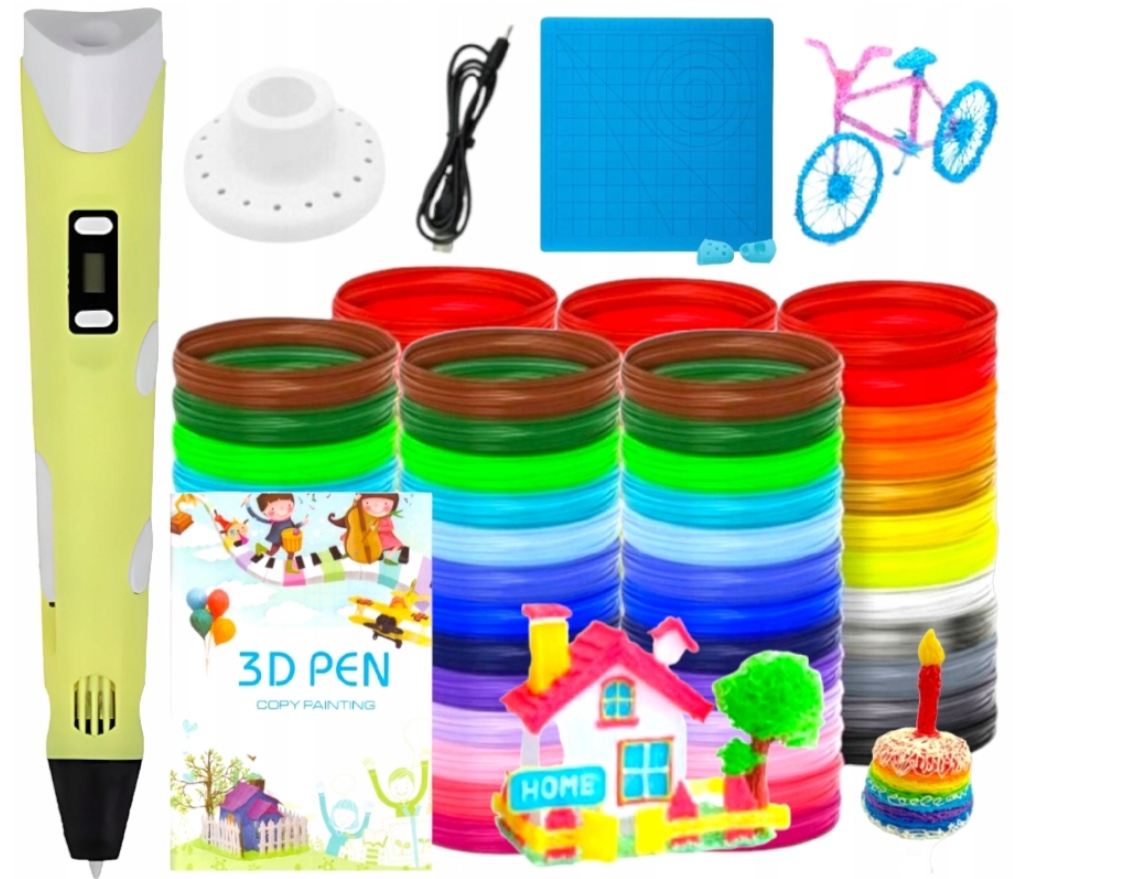 DŁUGOPIS 3D DLA DZIECI DRUKARKA ŻÓŁTY + WKŁAD 310m + SZABLONY + MATA ZESTAW