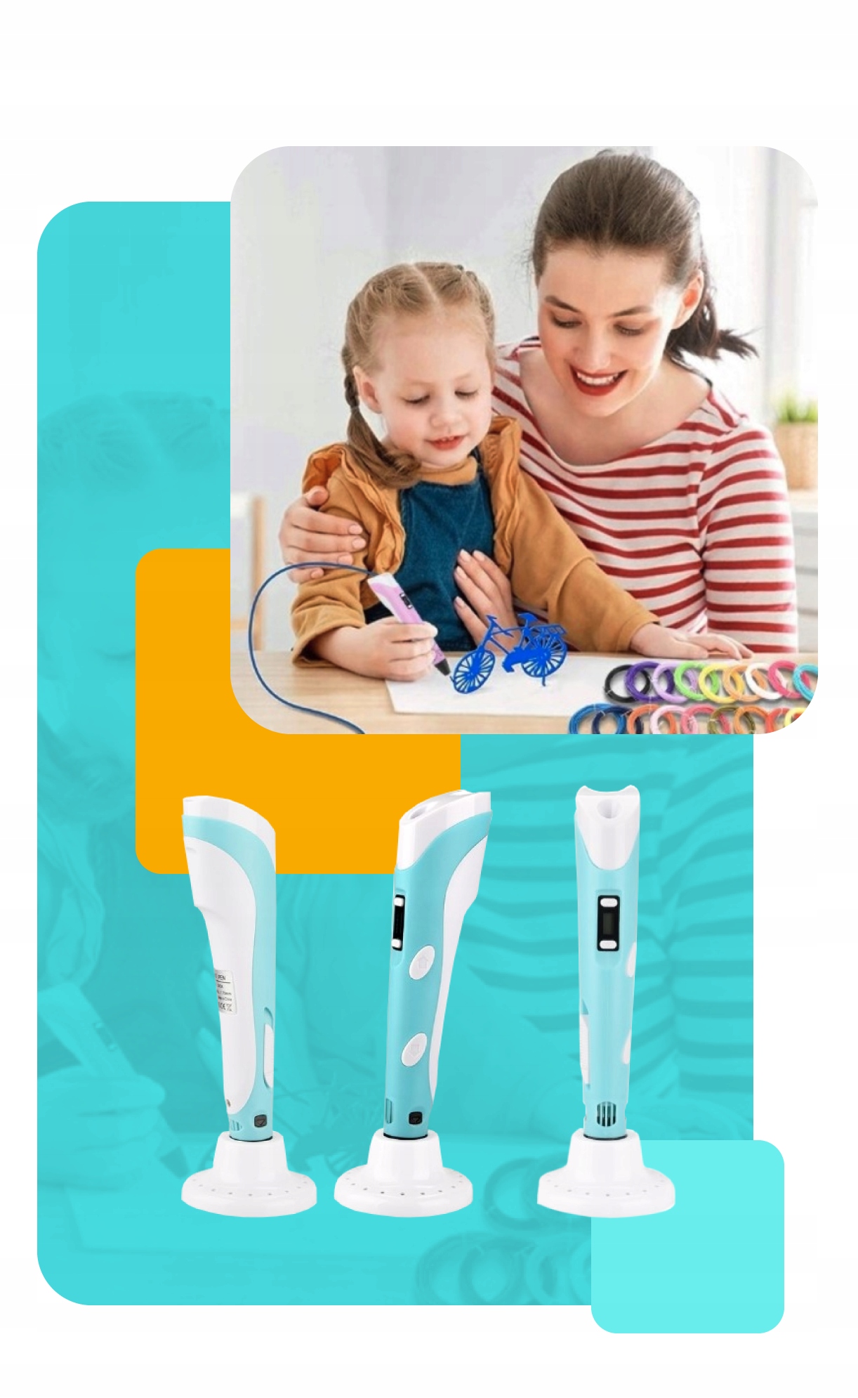 DŁUGOPIS 3D DRUKARKA 3D PEN dla dzieci + 110m WKŁAD SZABLONY MATA ZESTAW XL