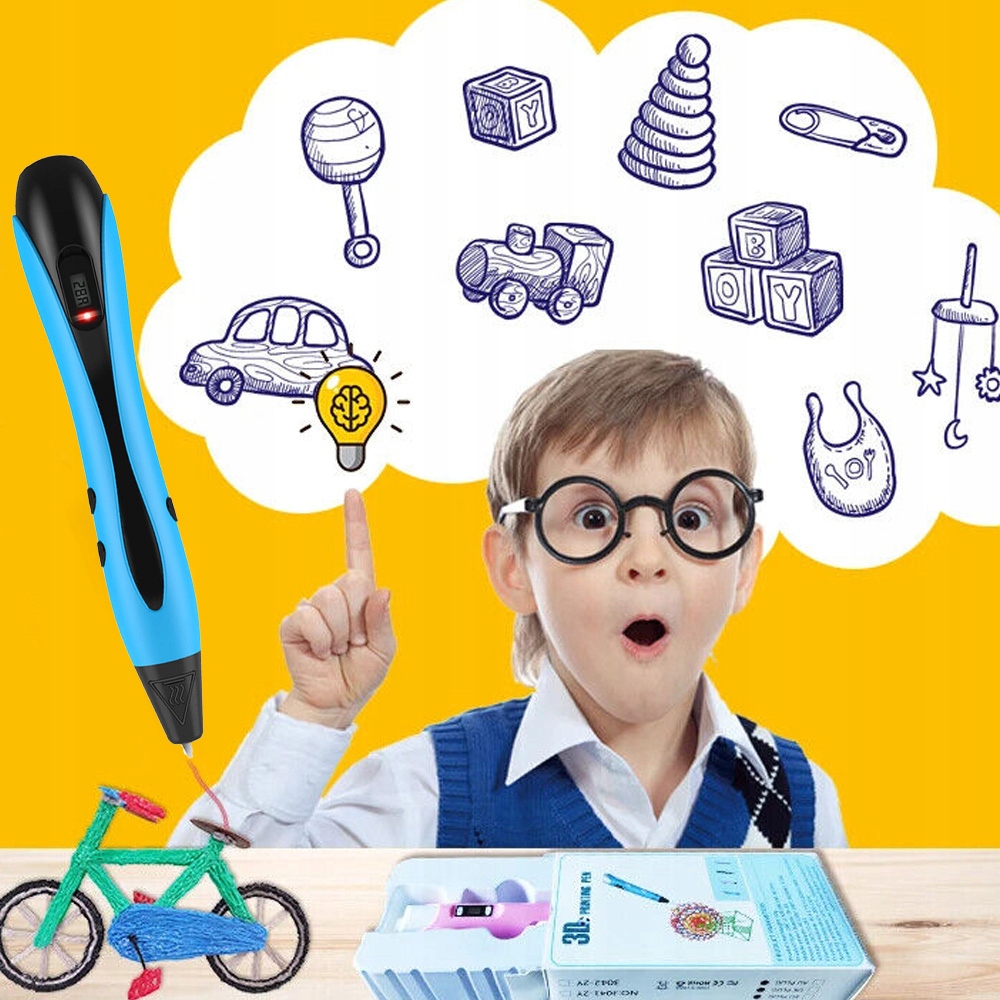 Długopis 3D drukujący LED +WKŁADY FILAMENT PLA 120ft Niebieski