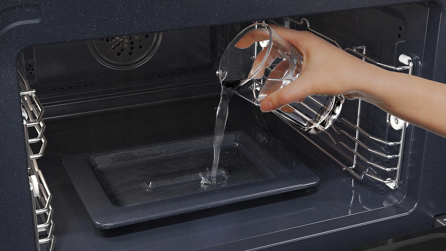 Чистка паром – быстрый и удобный метод, не требующий использования моющих средств. Чтобы эффективно очистить духовку, достаточно налить внутрь немного воды и выбрать функцию очистки паром, которая эффективно растворит грязь. Наконец, грязь можно легко удалить тряпкой.