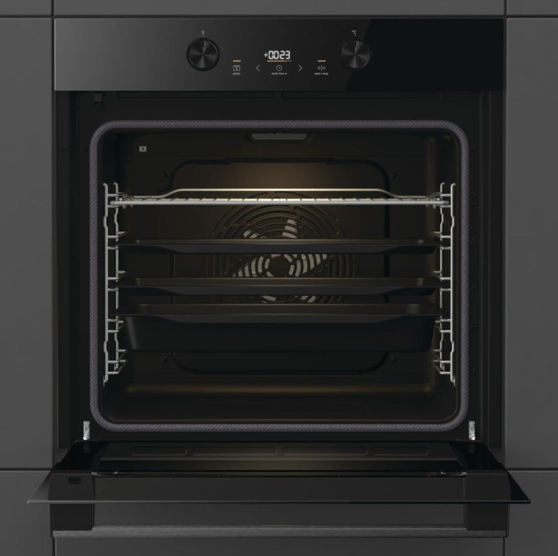 Готовы к рецептам XXL? Инновационное дизайнерское решение позволяет увеличить внутреннее пространство и полностью использовать ширину духовки. На каждом противне стало больше места, а превосходная технология обеспечивает равномерное пропекание блюд на всех уровнях.