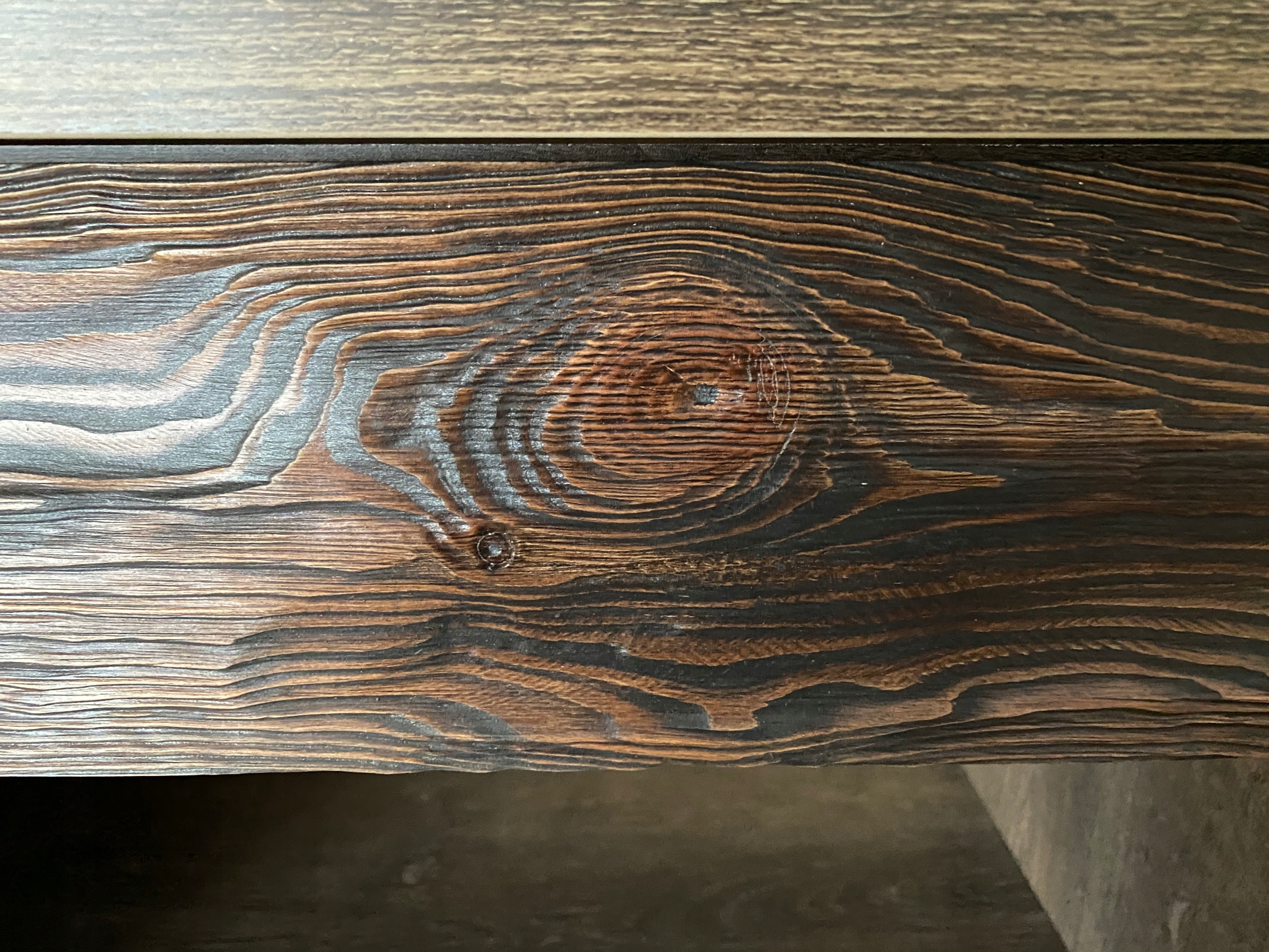 Ребристость означает получение неровной структуры на поверхности дерева. Эта технология предполагает вырезание или фрезерование зазоров и царапин размером 2 – 3 мм. Рифленая доска – чрезвычайно привлекательный элемент, тонко интегрированный в фасады мебели.