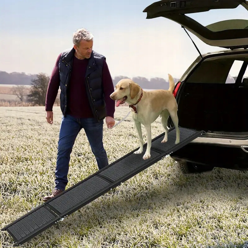 Складывание 170 см рампы является идеальным решением для крупных и средних собак, которые испытывают трудности с въездом в автомобили, внедорожника или фургоны. Благодаря твердому дизайну, он поддерживает груз до 110 кг, обеспечивая безопасность и комфорт для животного.