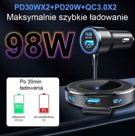 Зарядное устройство мощностью 98 Вт идеально подходит для других устройств, таких как планшеты, GPS-навигаторы, камеры, видеорегистраторы и т. д.