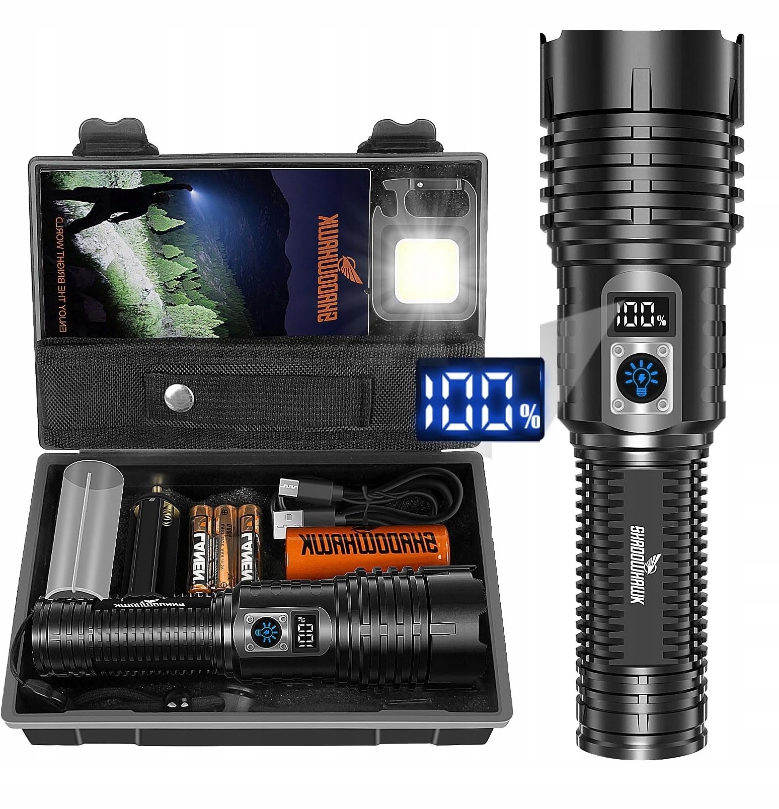 - Компоненты Прикреплены: 1x Подарочная рука и подарочная коробка, 1x батарея 5000 мАч 26650 и USB -кабель для зарядки, 1x Flashback, 1x Survival Flashlight, 3 -й батарея. AAA Батарея, батарея и держатель рукава, 1x Shadowhawk S1695, заряженный