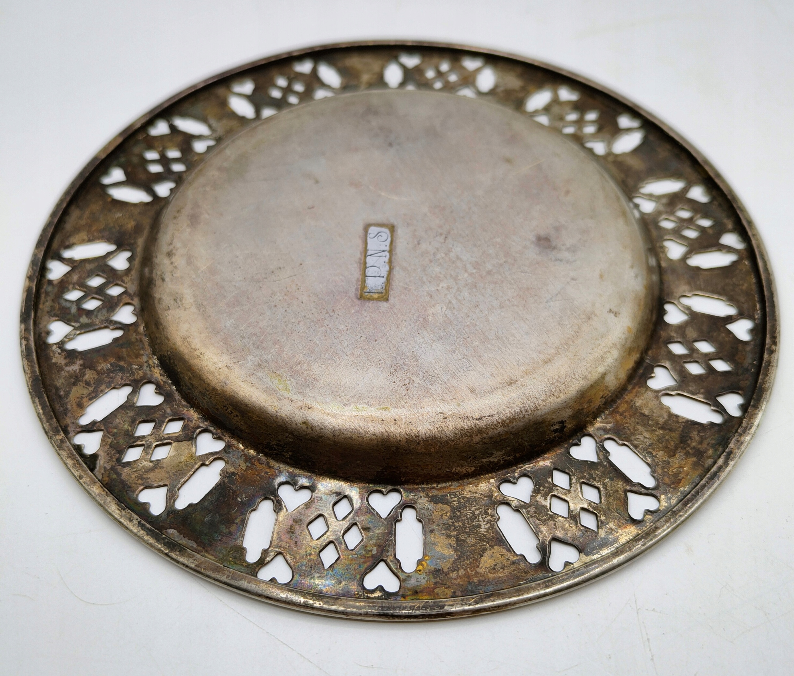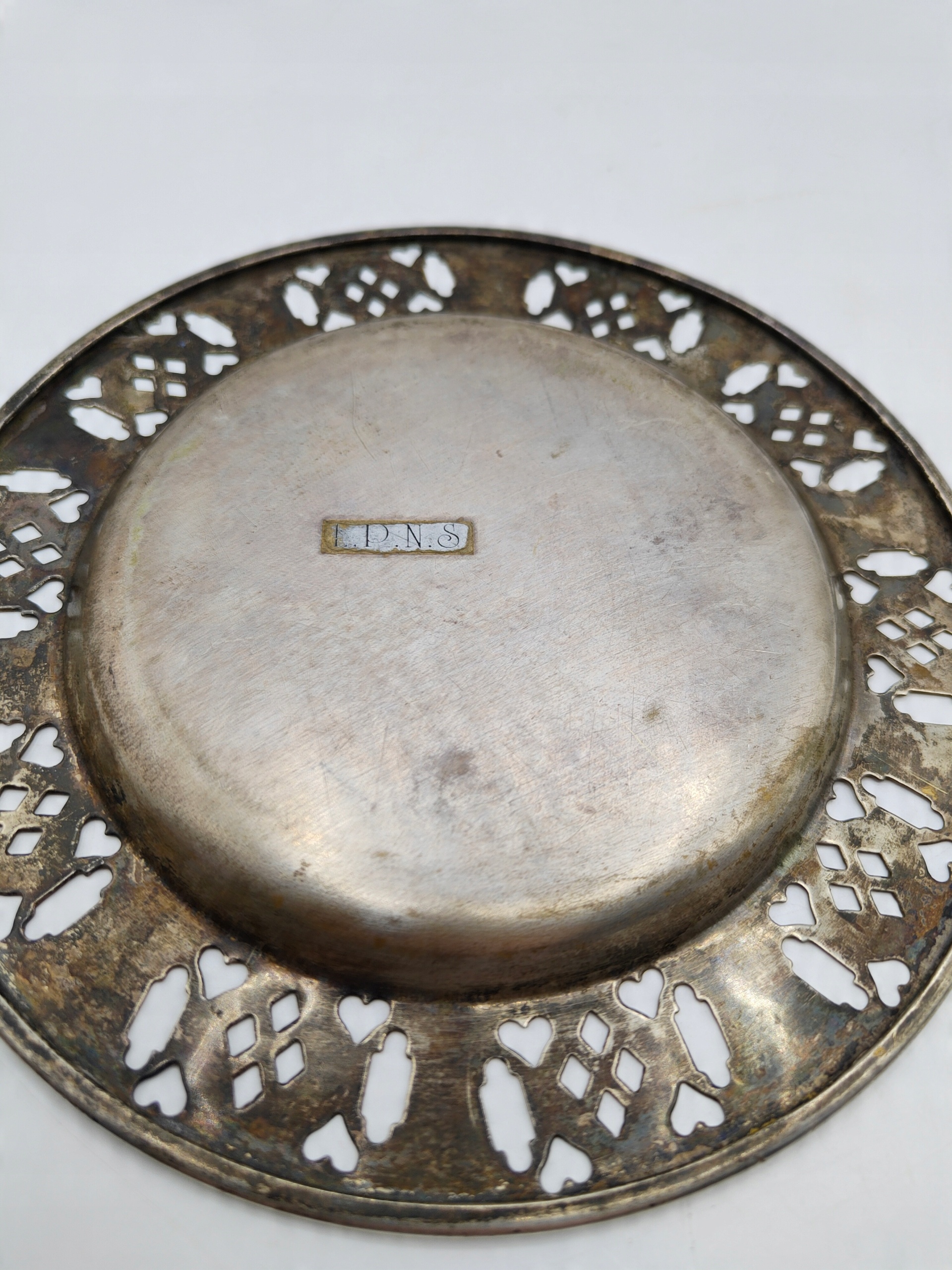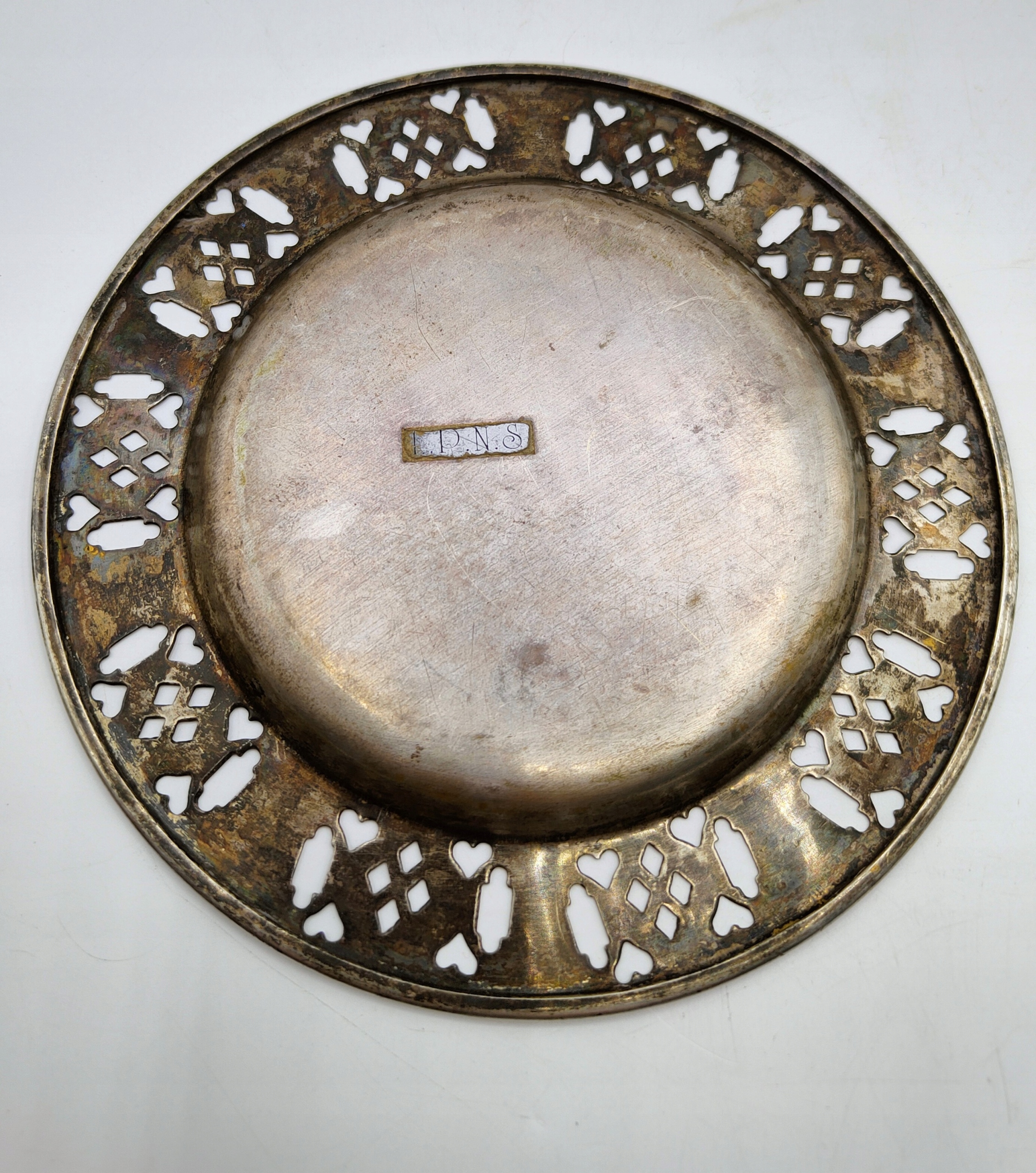 очень старая ажурная тарелка, посеребренная - предмет коллекционирования