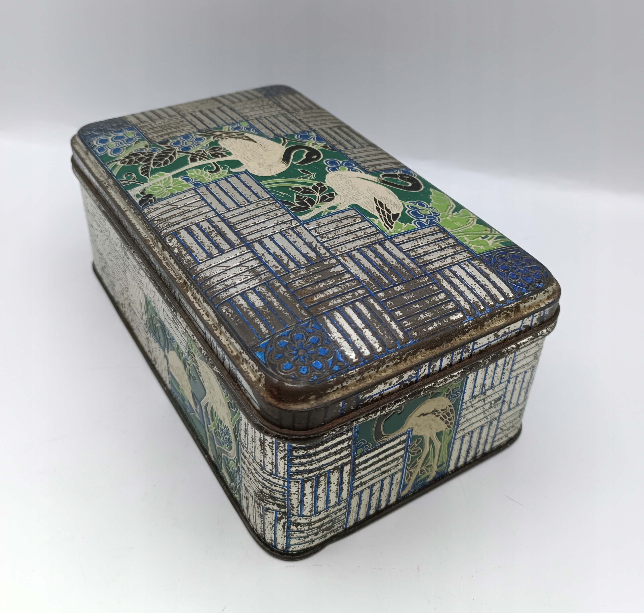 очень старая металлическая банка, шкатулка - птицы - цапли - 20 см