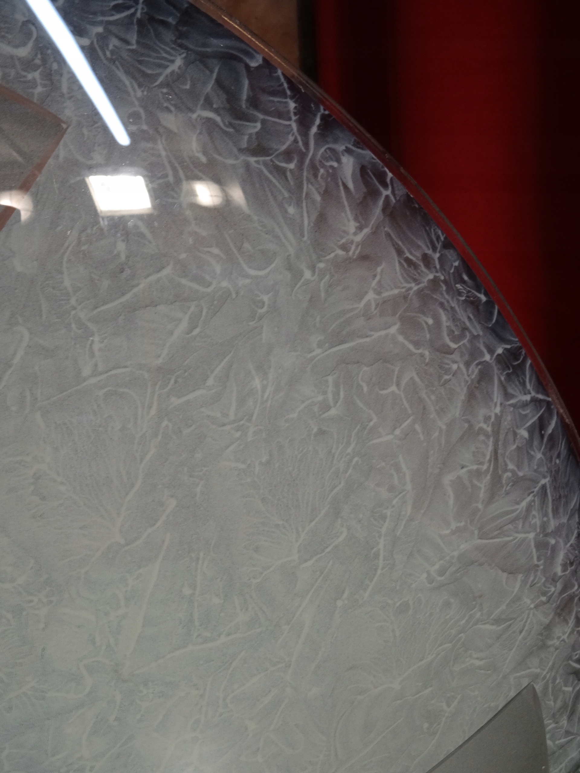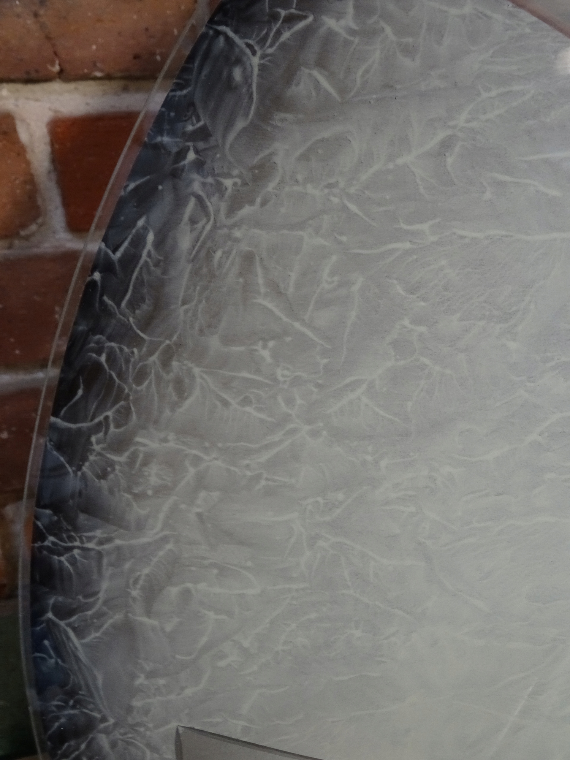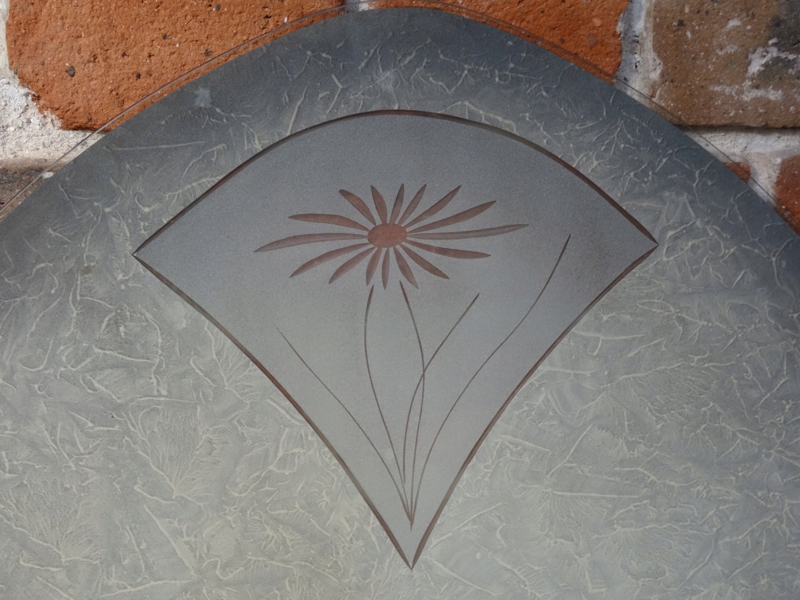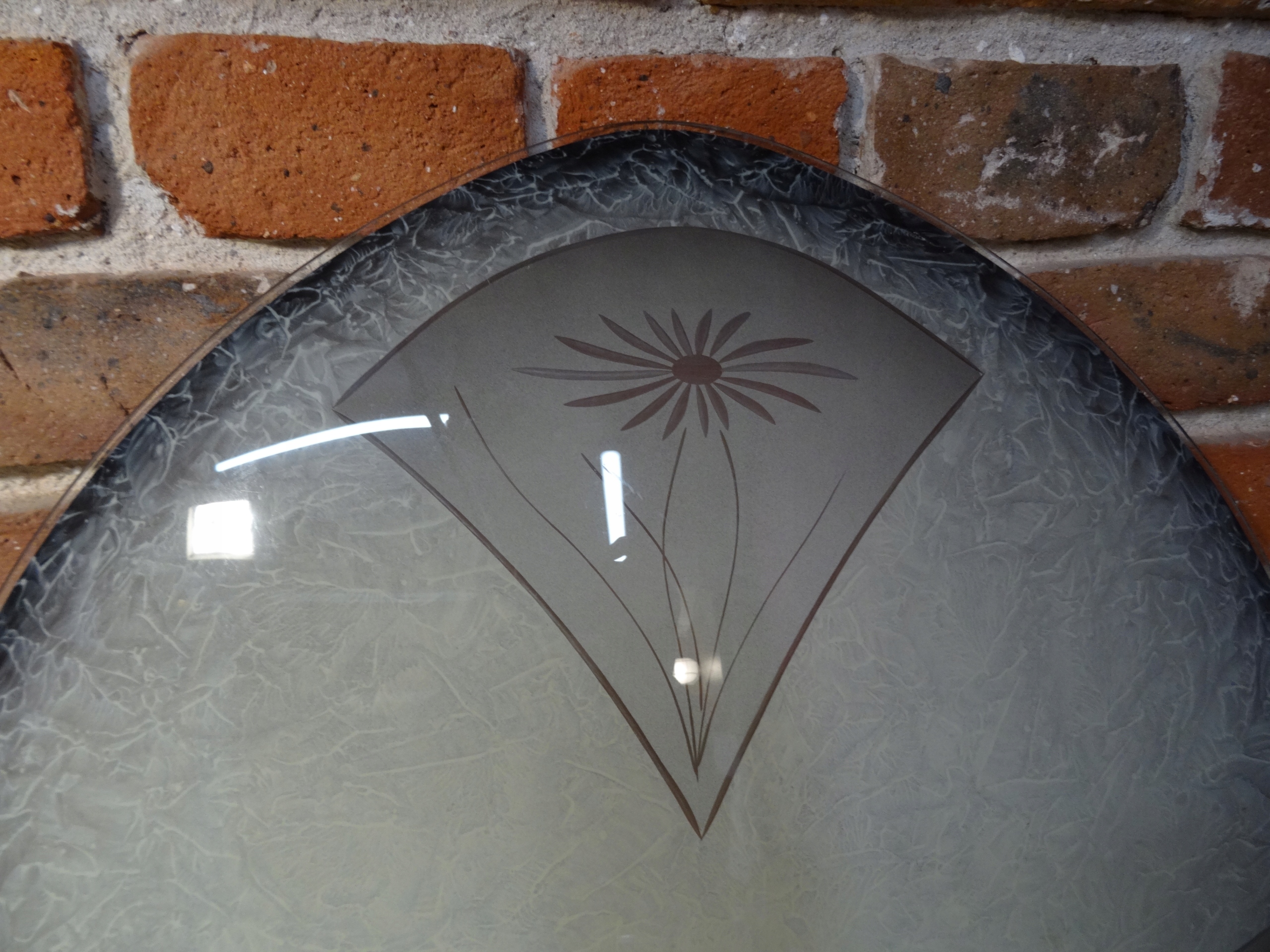 Очень большой абажур для подвесного светильника. Внутренняя часть чаши расписана майо, в стекле между ними вырезаны цветы. Оригинальный абажур, старый, очень красивый.