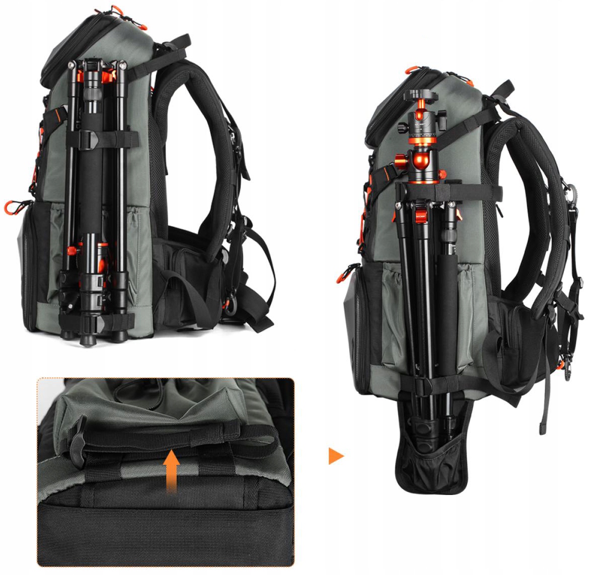Сбоку рюкзака имеется карман и регулируемый ремень, к которому можно прикрепить штатив. Идеальное решение для любой поездки, особенно для фотографов, желающих фотографировать со штатива.