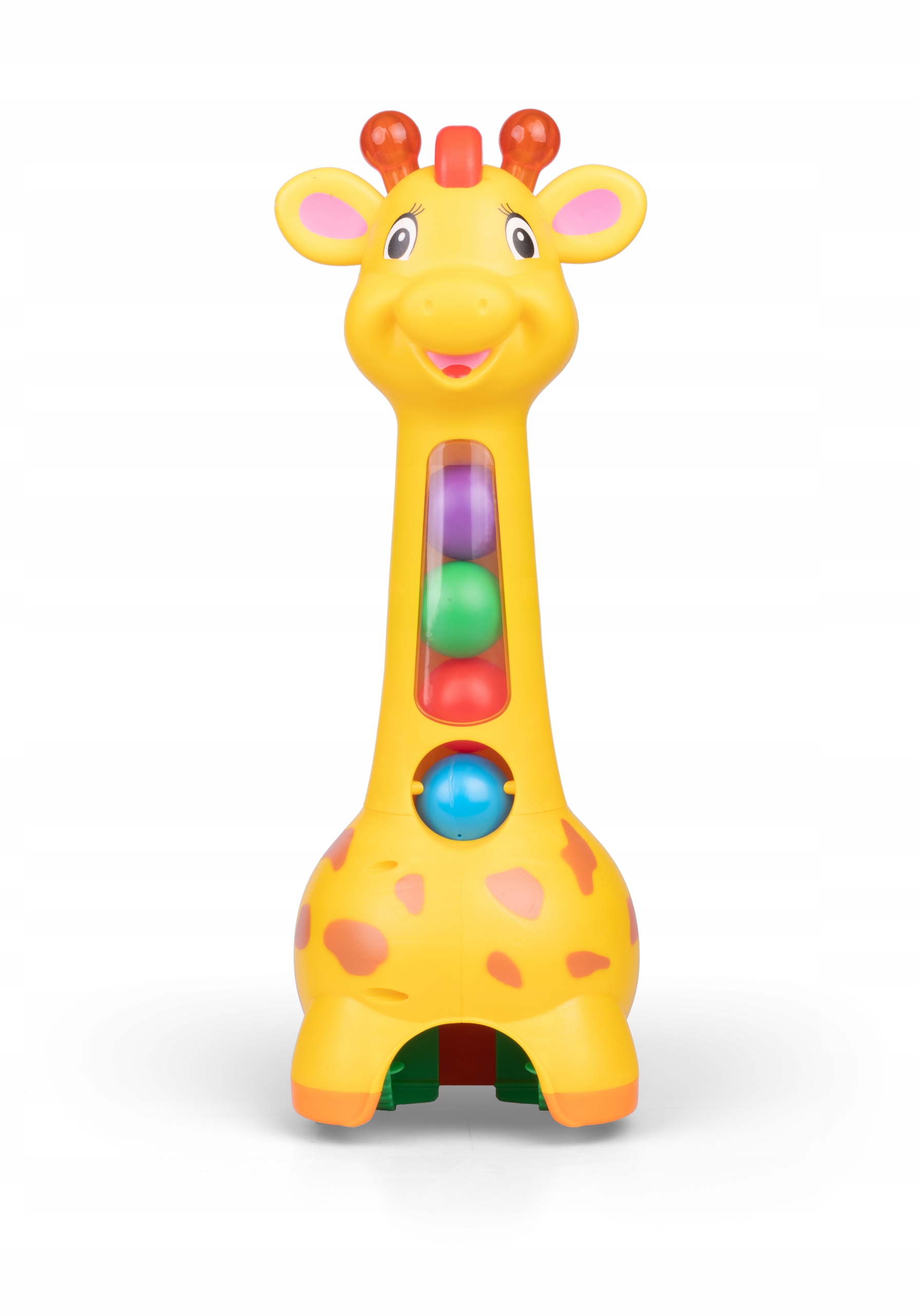 Улыбающийся жираф, который благодаря специальной ручке малыш может взять с собой на прогулку. Это милое животное даже будет играть с ним в футбол! Все, что нужно сделать Малышу, — это нажать на гриву, и жираф тут же выстрелит одним из четырех разноцветных шариков, находящихся у него в брюхе. Чтобы собрать все шарики, просто переместите игрушку над ними, и она сразу превратится в пылесос для шариков и соберет их все, бросив обратно в животик. Это не единственное, на что способно это умное животное. При нажатии кнопки, расположенной возле его гривы, зазвучит веселая мелодия и мигающие огоньки.
