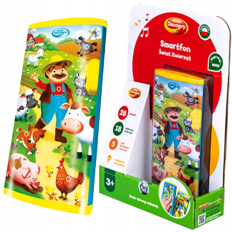 Смартфон с сенсорным экраном, до краев наполненный звуками и мелодиями! На двух красочных страницах вы найдете множество реалистичных звуков животных, песню на польском языке, красочные фигуры и цифры. Совместите развлечение с обучением и откройте для себя все сюрпризы, спрятанные в этой компактной игрушке.