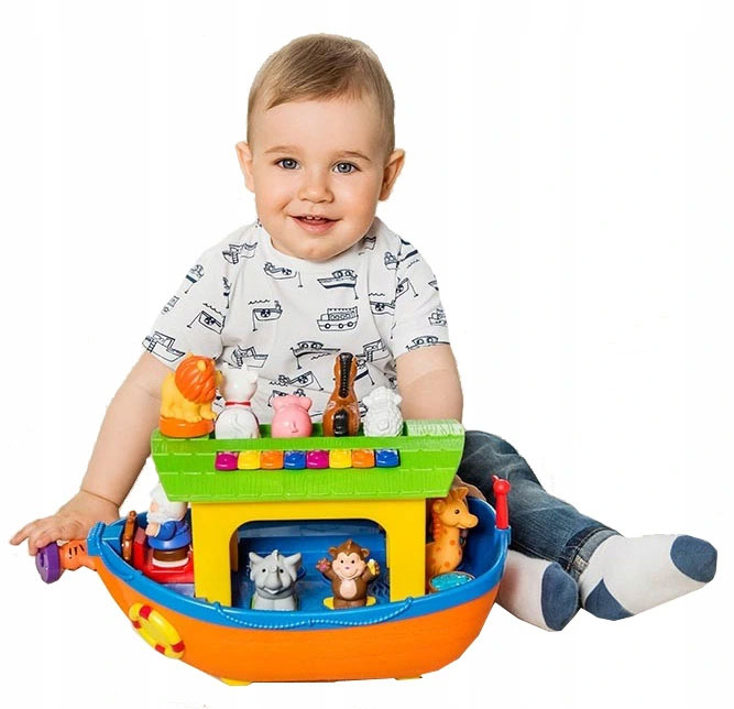 Ноев ковчег содержит 9 животных, которые будут вознаграждать детей реалистичными звуками или веселыми стишками каждый раз, когда они угадают правильную форму и поместят ее в нужное место. Руль ковчега при повороте издает реалистичные звуки. В игрушке есть красочное мини-пианино, на котором можно сыграть собственную композицию. К ковчегу можно прикрепить веревочку, на которой его сможет носить малыш. Во время движения Ковчег имитирует движения «лодки, плывущей по волнам».