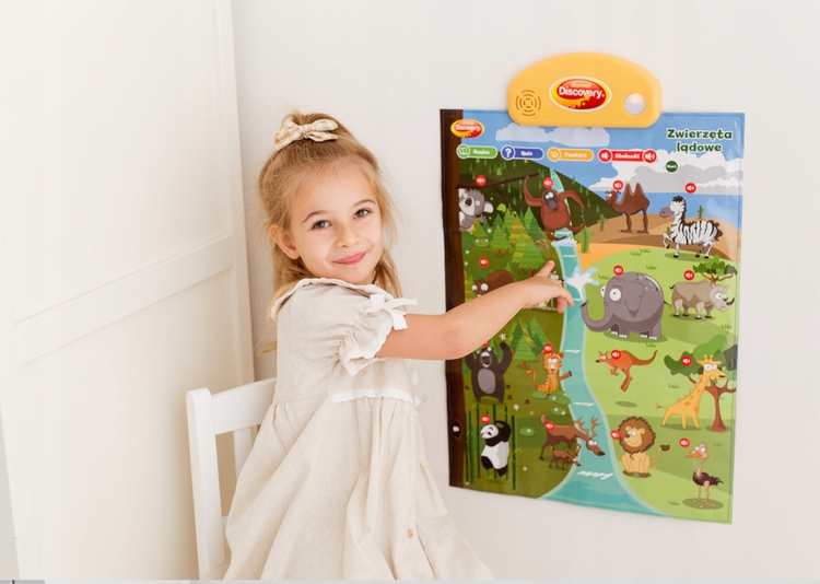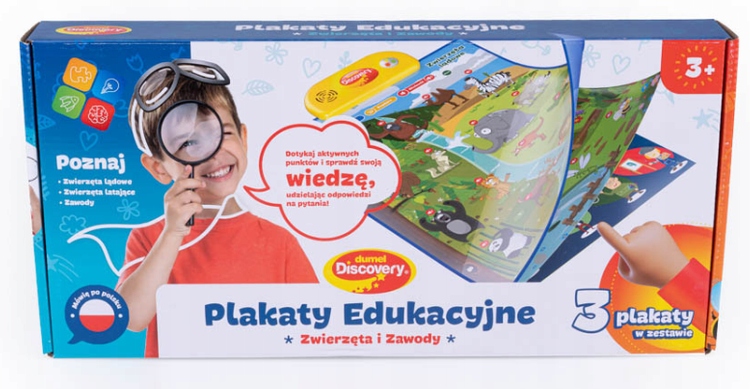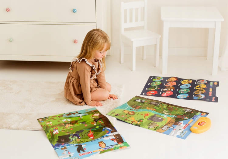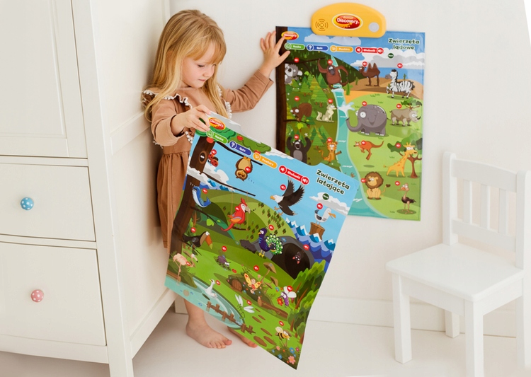 В комплект входят 3 плаката: наземные животные, летающие животные и соревнования, каждый из которых позволяет играть двумя разными способами. В режиме «Обучение» плакат рассказывает интересные факты о животных или профессиях, а в режиме «Викторина» задает вопросы, что позволяет проверить ранее изученную информацию.